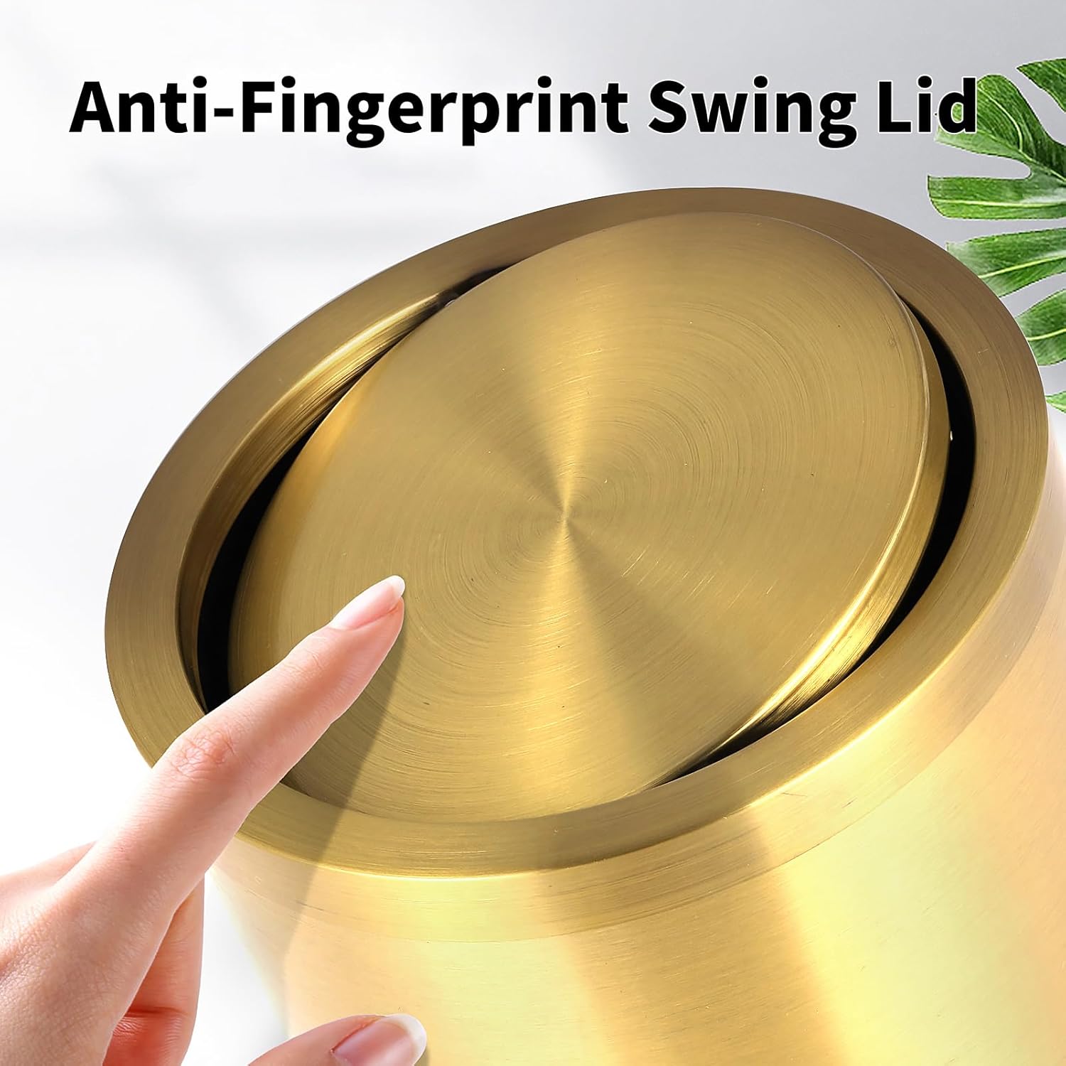 Brushed Gold Bathroom Trash Can with Swing Lid 4.7Gallon,Stainess Steel Garbage Can Trash Bin Wastebaskets for Kitchen,Office,Bedroom (Gold, 4.7 Gallon)