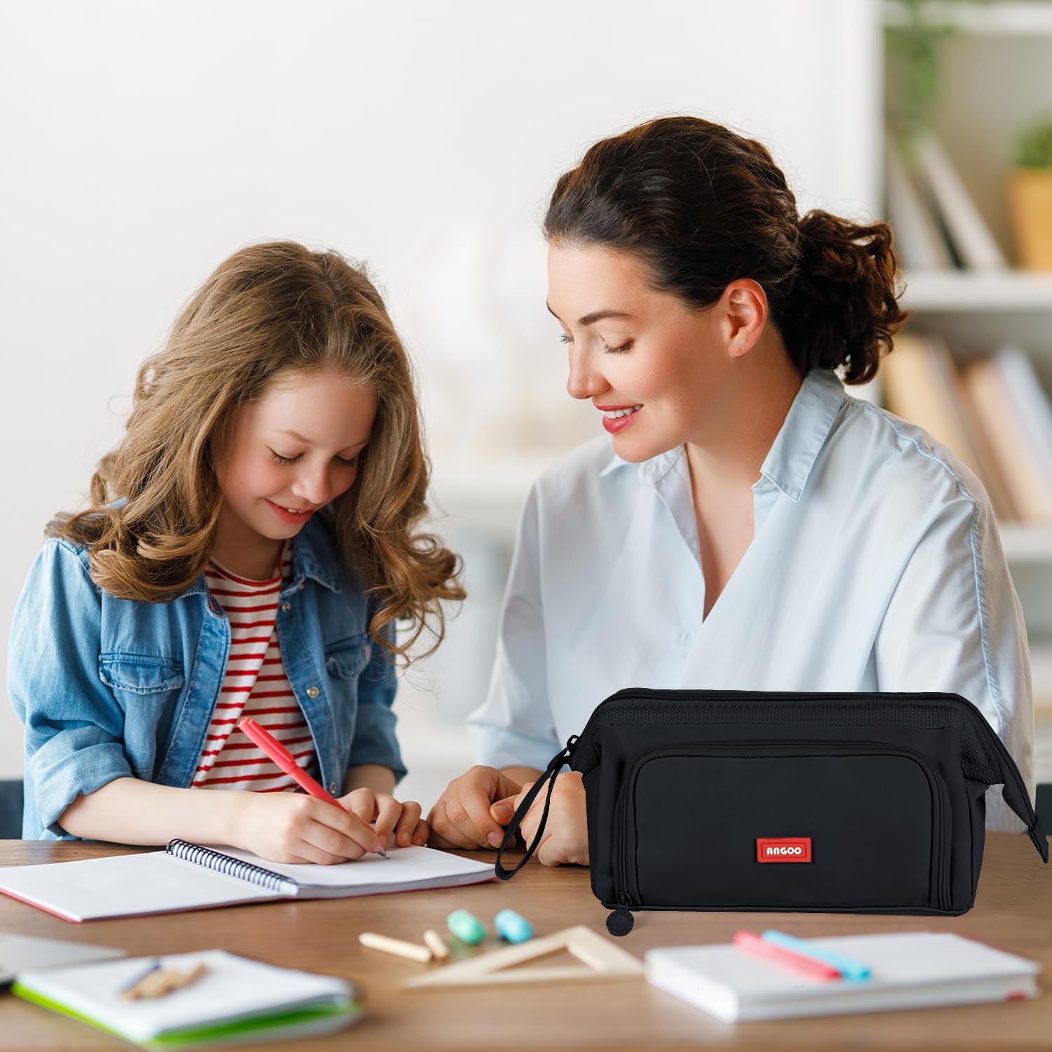 Pencil Case Pouch Large Capacity with Compartments, Pencil Case Pouch Bag with Zipper Handle for Teen Girls Boys Adults Women Men, Portable Pen Bag Stationery Organizer for Office School Travel, Black