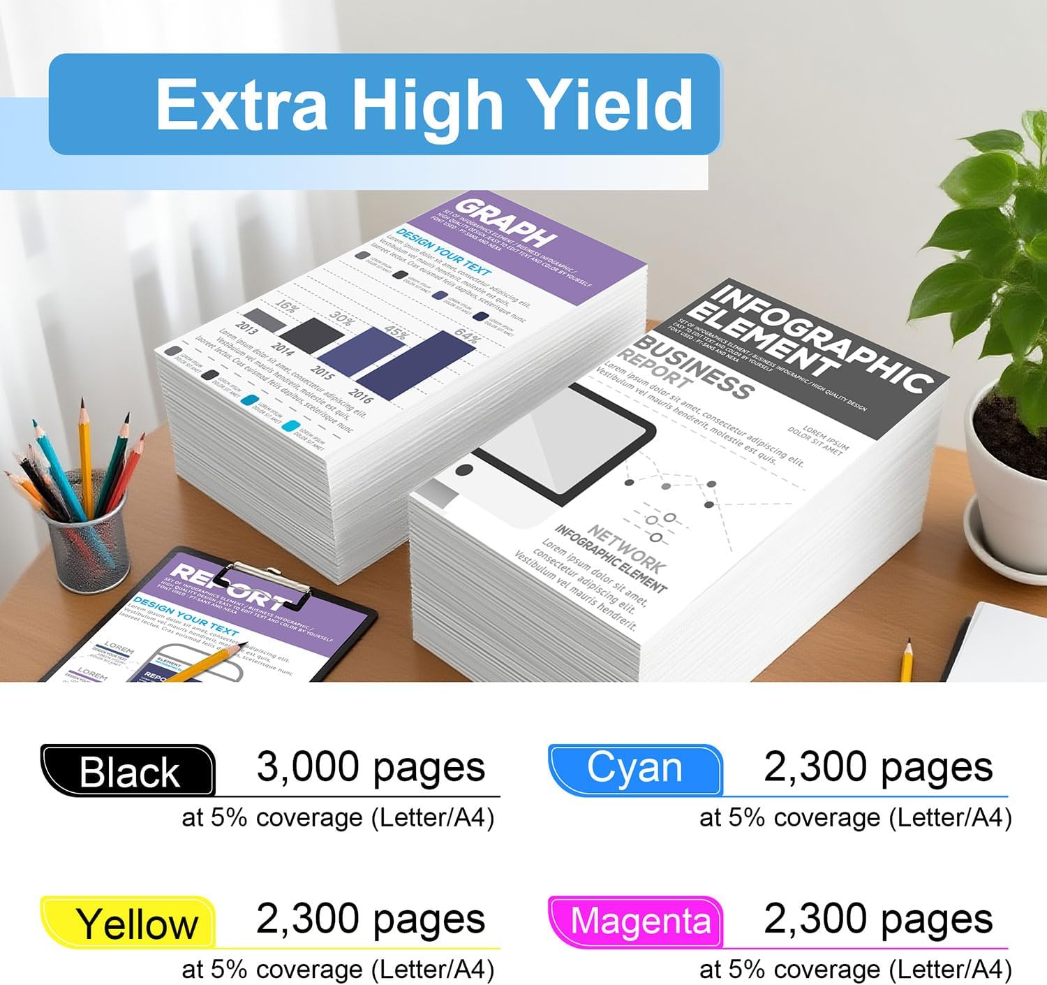 - High Page Yield: the high page yield for 4 pack TN229XL color toner cartridges set is up to 3000 pages per pack(at 5% coverage/Letter A4)