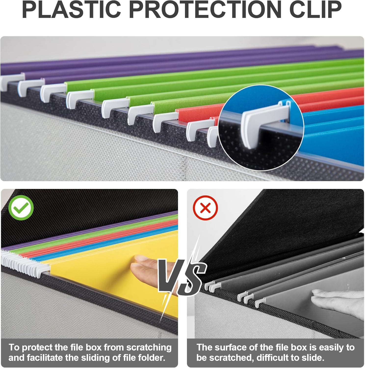 - Hanging Design - Versatile placement in file cabinets, on shelves, or under desks