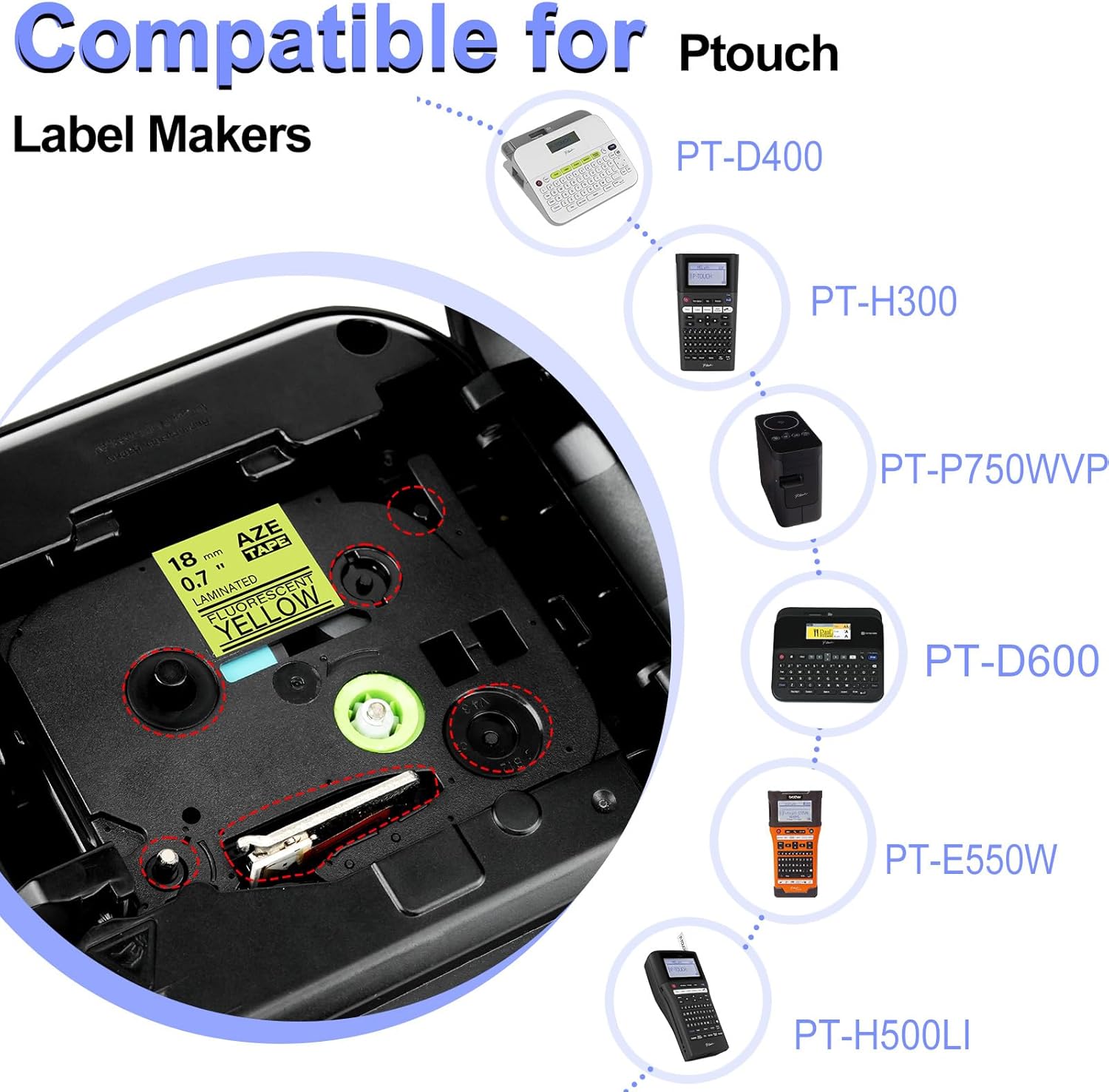 2 Pack Compatible for Ptouch TZe-C41 TZ-C41 TZe TZ Label Tape 18mm 0.7'' Laminated Black on Fluo Yellow Label Maker Tape for PT-D600 PT-D610BT PT-D600VP PT-P710BT PT-P750W