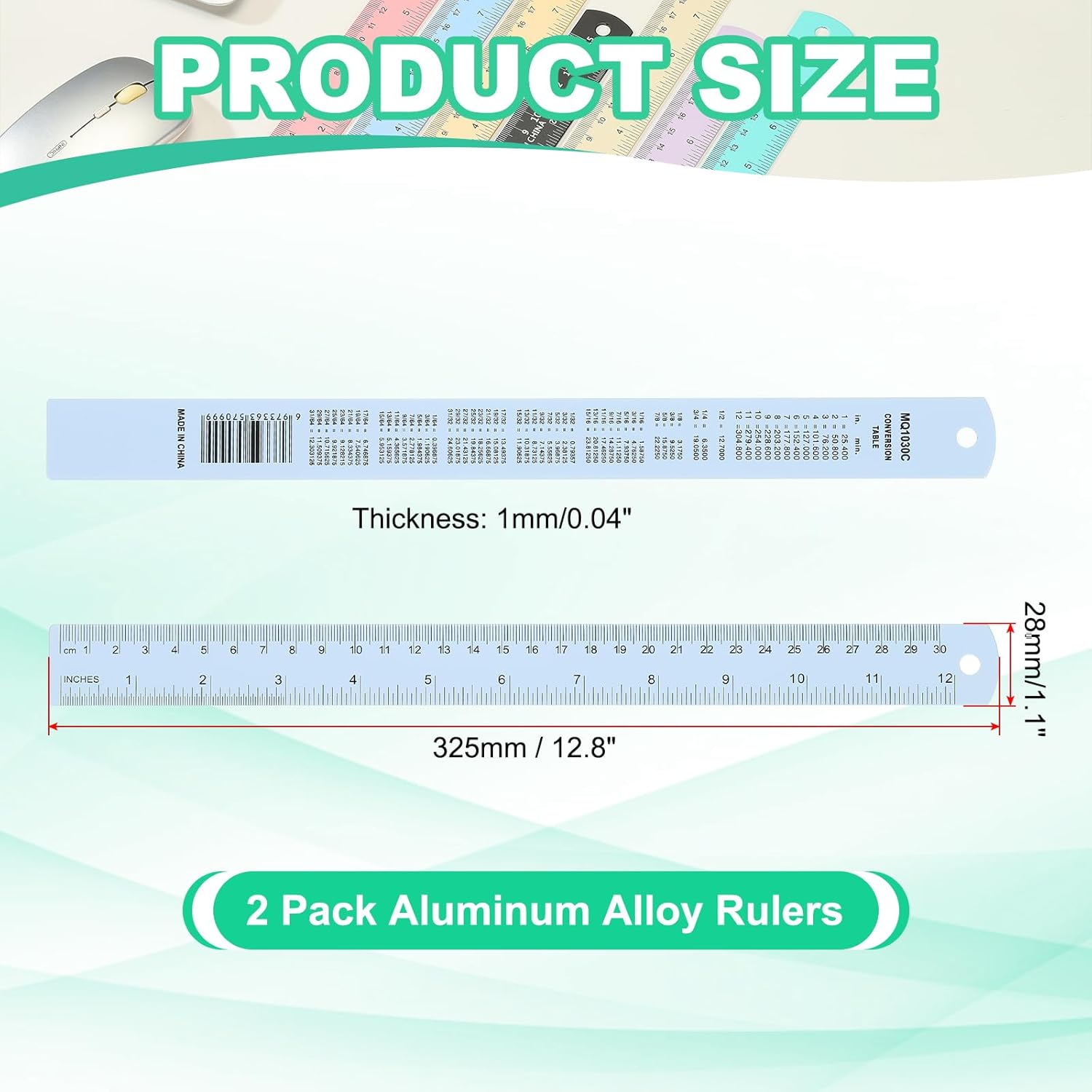 - Specification: Color: Blue; Material: Aluminum Alloy; Mileage: 30cm/12"; Total Length: 325mm / 12.8 inch; Width*Thickness: 28 x 1mm / 1.1 x 0.04 inch; Packing List: 2 Pack x Aluminum Alloy Rulers