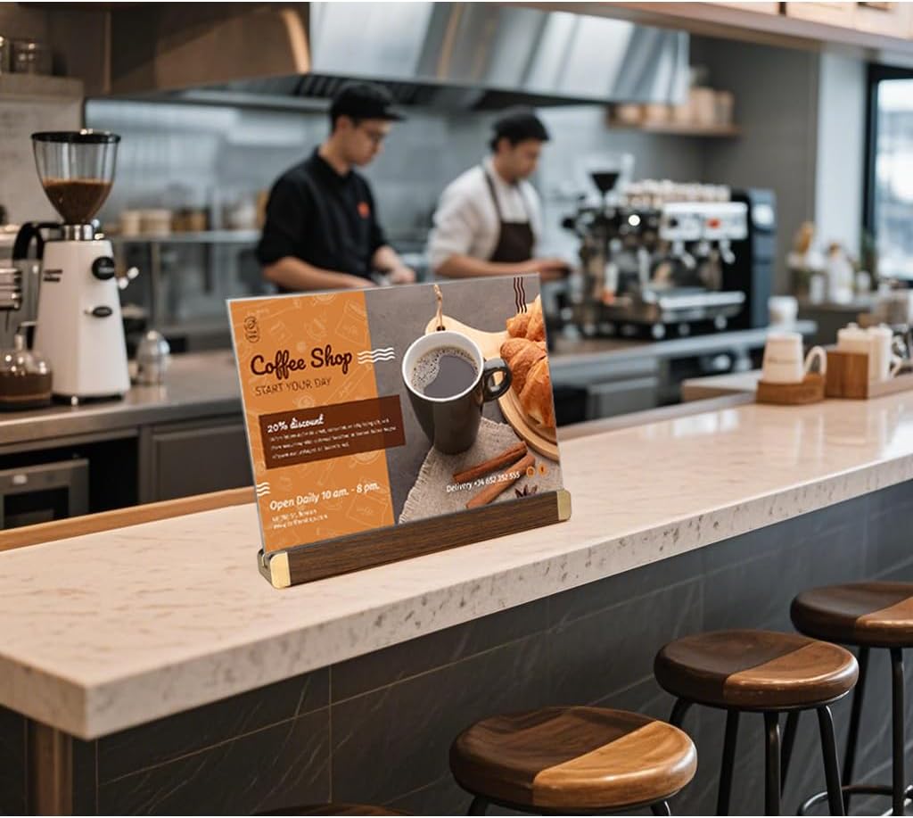 - The classic and elegant appearance is suitable for various occasions, such as office documents, home photo frames, cafe menus, wedding reception tables numbers, store promotions and more. Golemas sign holder can enhance the style of your desktop or bar counter.