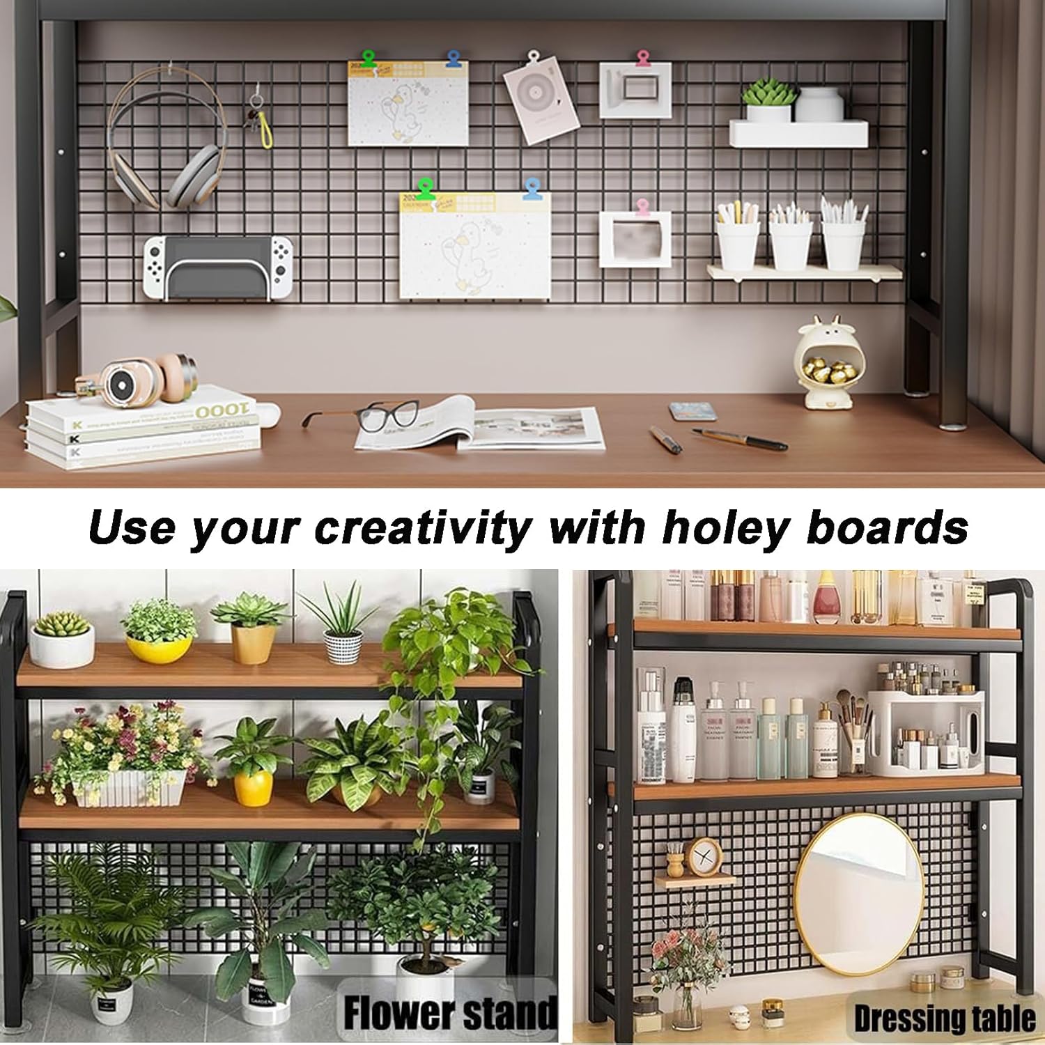 - Daily Storage Convenience: Desktop shelf away from the trouble of messy desktop or insufficient storage space, provide storage space for your printer, fax machine or books, office supplies, photo frames, and can place toiletries, sundries, plants, etc, Hole plate design allows you to hang headphones, keys and other accessories