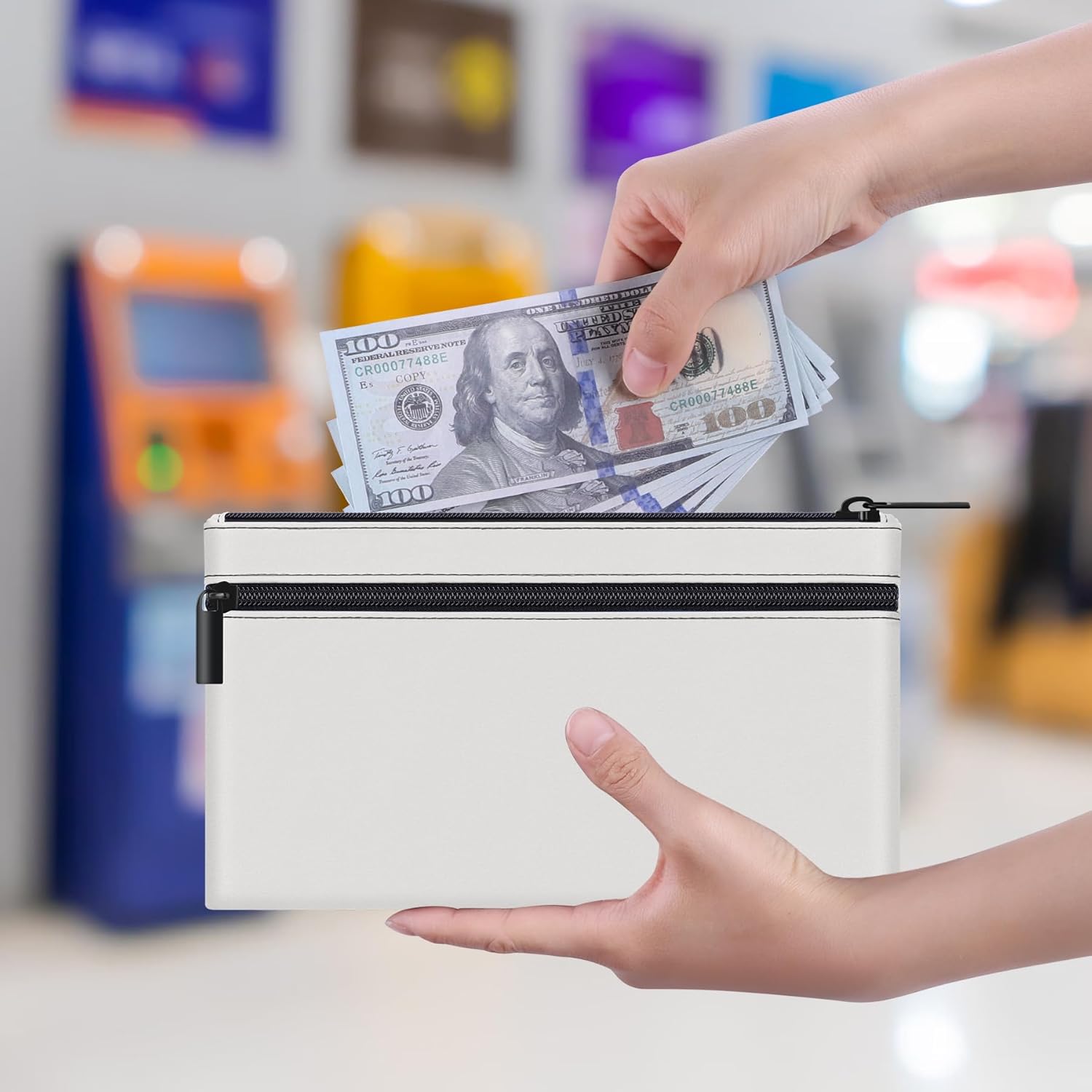 - Double Pocket Design: Two pockets increase the convenience of the cash bag, allowing you to better save and classify your personal items, like bank deposits, cosmetics, etc