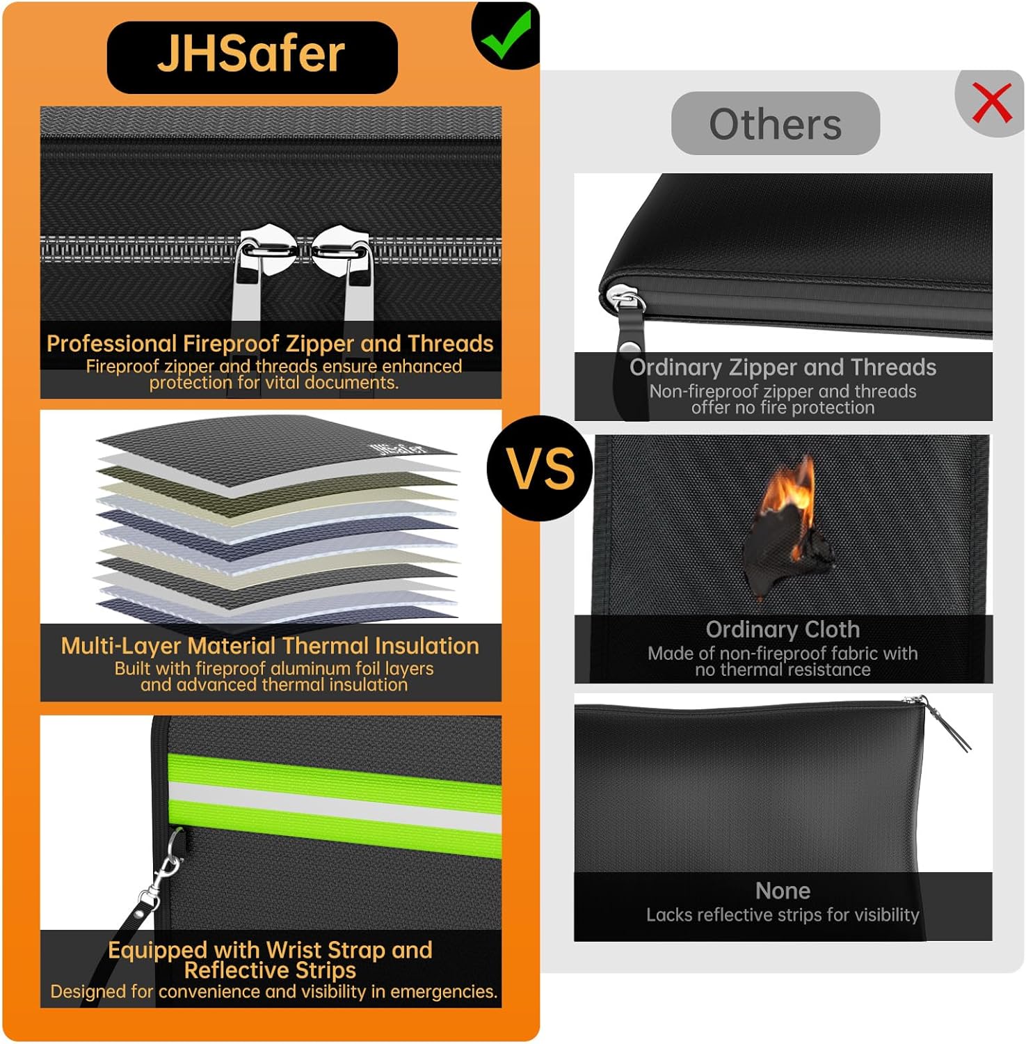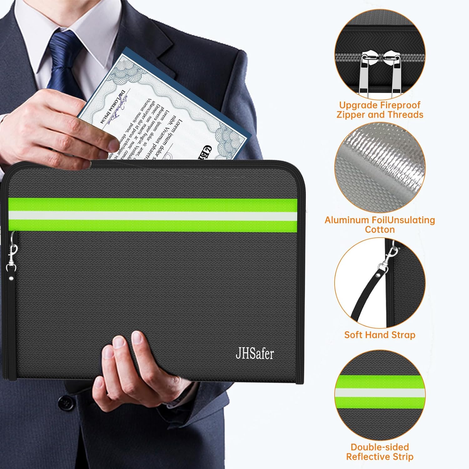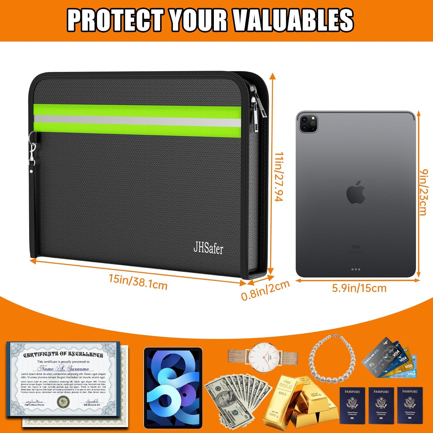 - [Quick-Grab Reflective Strip]:The high-visibility reflective strip ensures instant location in low-light emergencies. The 15”x11” interior lets you organize legal/A4 documents, passports, jewelry, and cash effortlessly. Ideal for fast evacuation