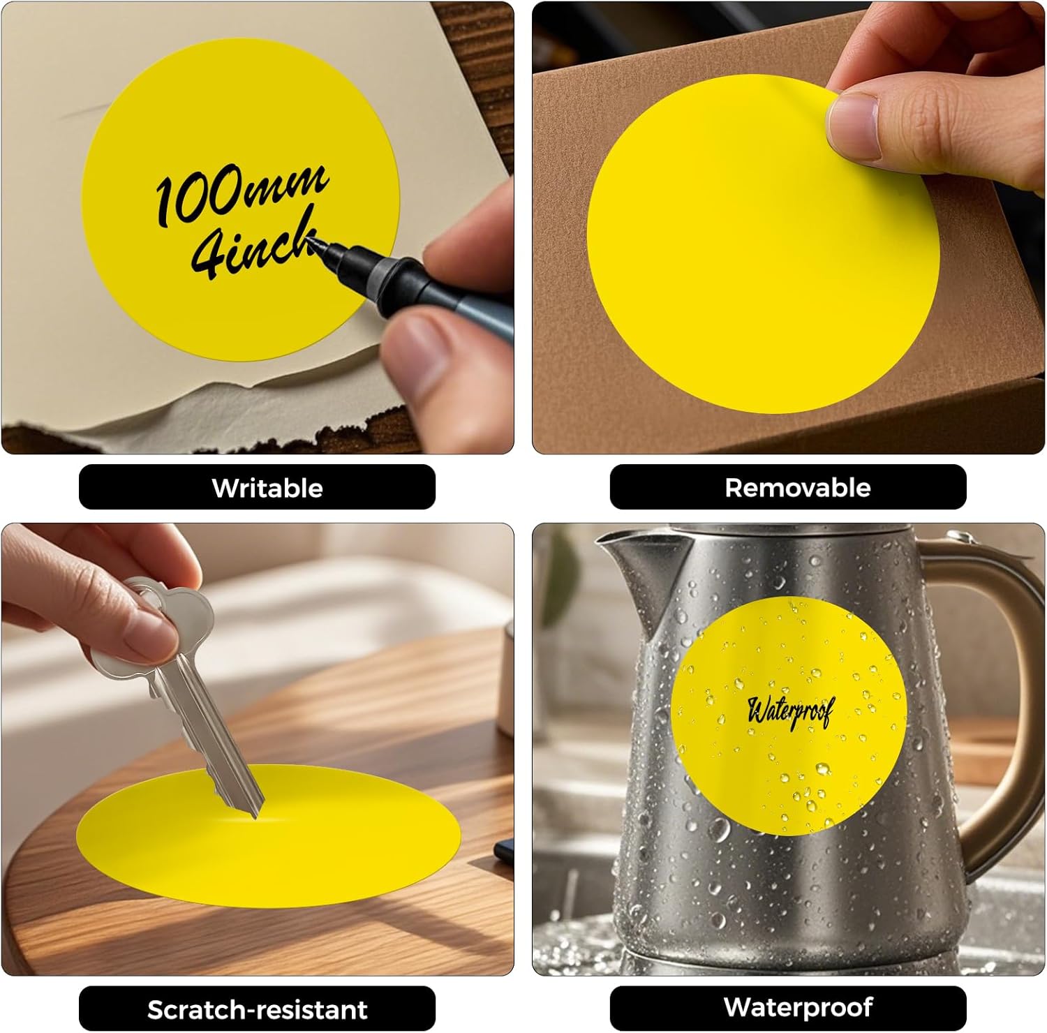 - Waterproof: Circle stickers are resistant to water, which makes them suitable for use in bathrooms, kitchens and other wet environments. Dot stickers are not printable, but can be easily written on with Oil-based pens.