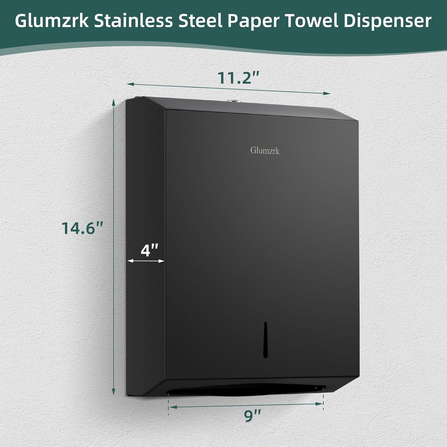 - 【Large Capacity】This paper towel dispenser holds 400-500 standard folded paper towels—perfect for C-fold, Z-fold, trifold, and multifold styles. So you don’t need to take much time replenishing tissues, convenient for use in high-traffic public places. Ensure your folded paper towels are 10" x 4" or smaller (most common sizes on the market work great!) for smooth, hassle-free dispensing every time.