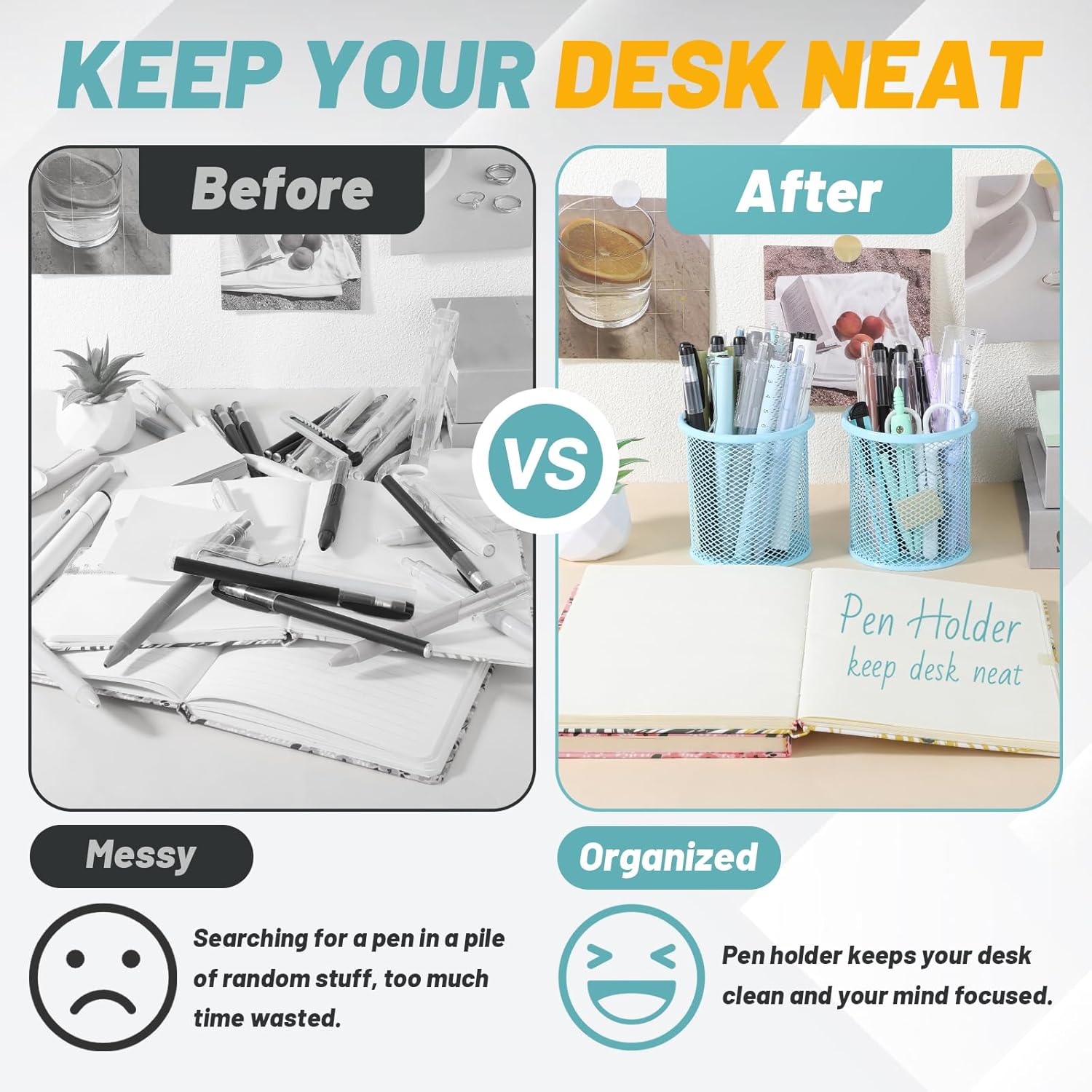 - Pencil Holder for Keeping Desktop Neat - Say goodbye to messy desk and drawers. This desk pen cup holder keeps pens, pencils, scissors, markers, rulers and more office supplies neatly in place. Whether you're working, studying, or crafting, it helps keep your space clean and focused. Great for classroom students, office workers, or home use.