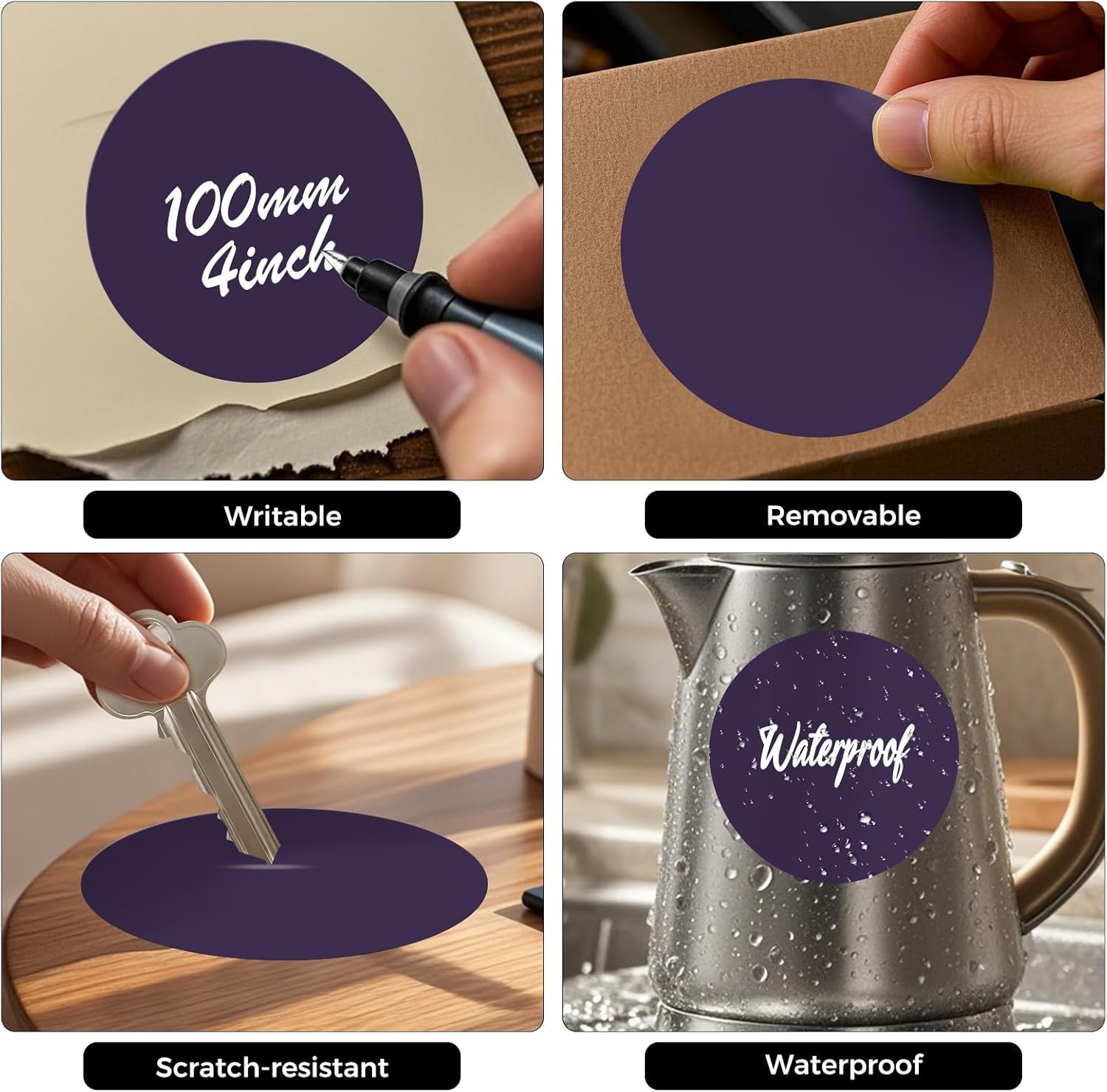 300 PCS Round Stickers 4 Inch Purple Vinyl Circle Floor Dots Sticker Removable Self-Adhesive Colored Large Label Roll for Marking Inventory Organizing Classroom Line Up Spots