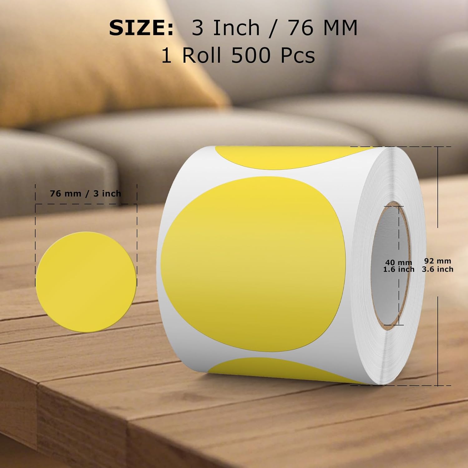- Specification: FINDAT yellow dot stickers measure 76 mm / 3 inch in diameter. You will get 500 PCS stickers a roll. We get 10 different colors to you choose.