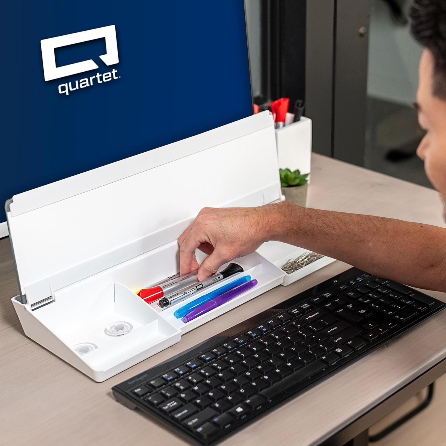 Quartet Glass Dry Erase White Board, Flip-Top Desktop Pad for Notetaking, 18" x 6" Whiteboard with Storage, Templates and Dry Erase Marker, White Surface (Q090F04-R)
