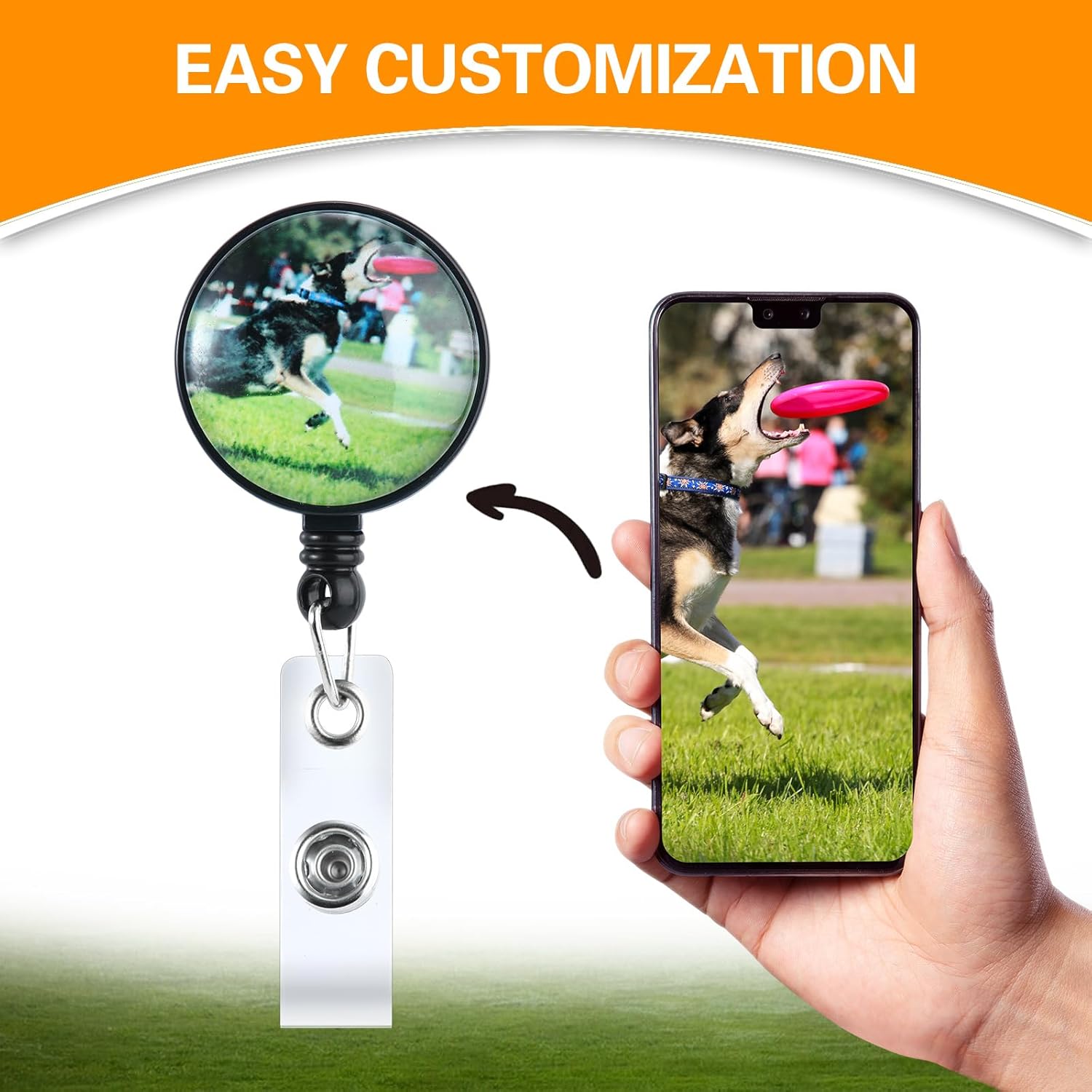 - 🎨 Fully Customizable Design – Make your badge uniquely yours! Choose from a variety of colors, fonts, and icons to create the perfect personalized badge reel or customizable badge reel that fits your style. Upload your photo or logo for a photo reel with maximum impact!