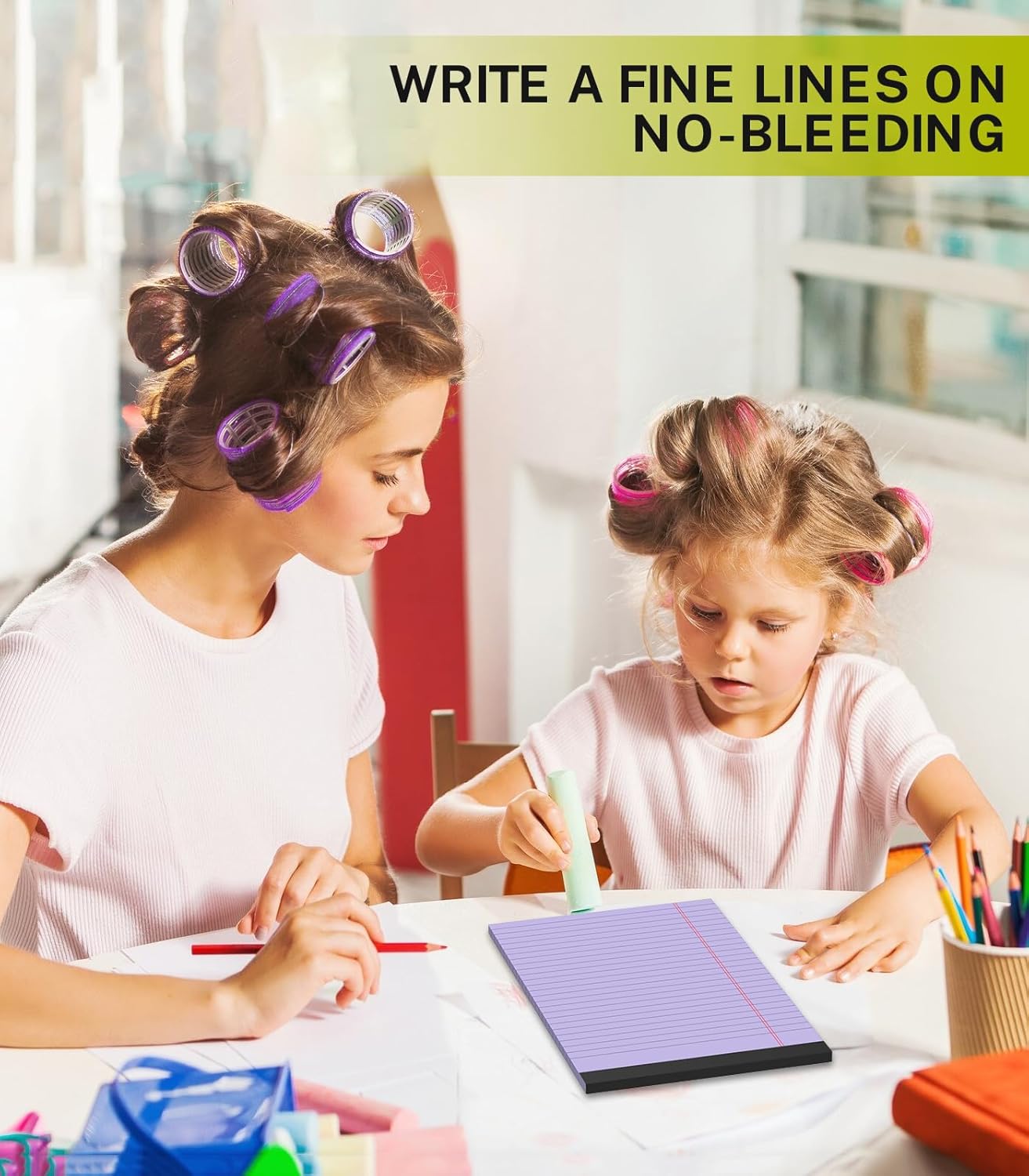 - 【Colored Legal Pads】These small notepad come in 4 colors: blue, green, pink, and purple. Each color has 6 pads, totaling 24 pads. The left side of the notepad features double red vertical lines, helping you organize your notes by categorizing content into different sections. The top of the pad leaves ample space for you to use as a to-do list or shopping list.
