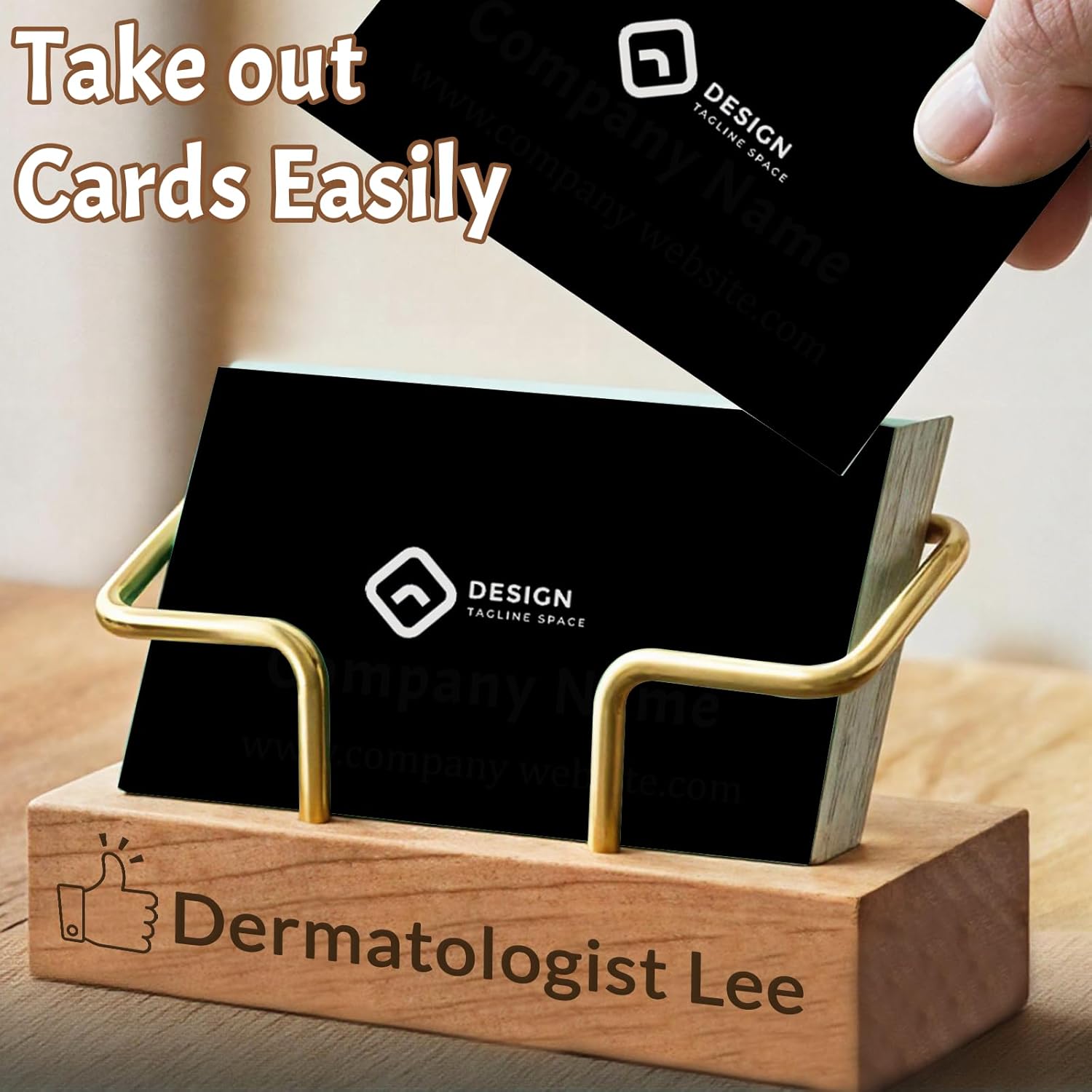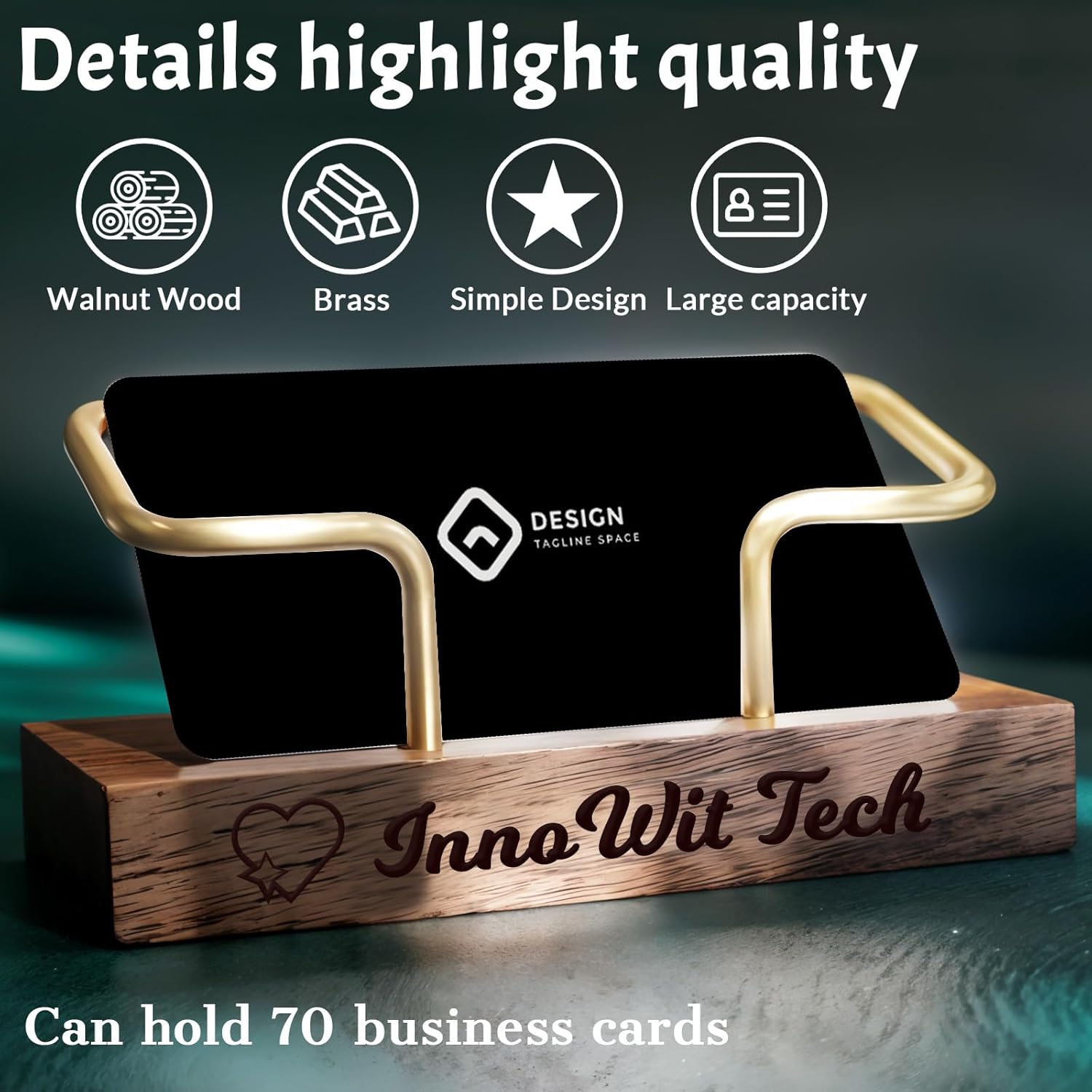 - High-Quality Material: The wooden business card display is crafted from walnut and beech woods with brass bracket,combining durability with sophisticated aesthetics. Desktop business card holder is the perfect companion for office use