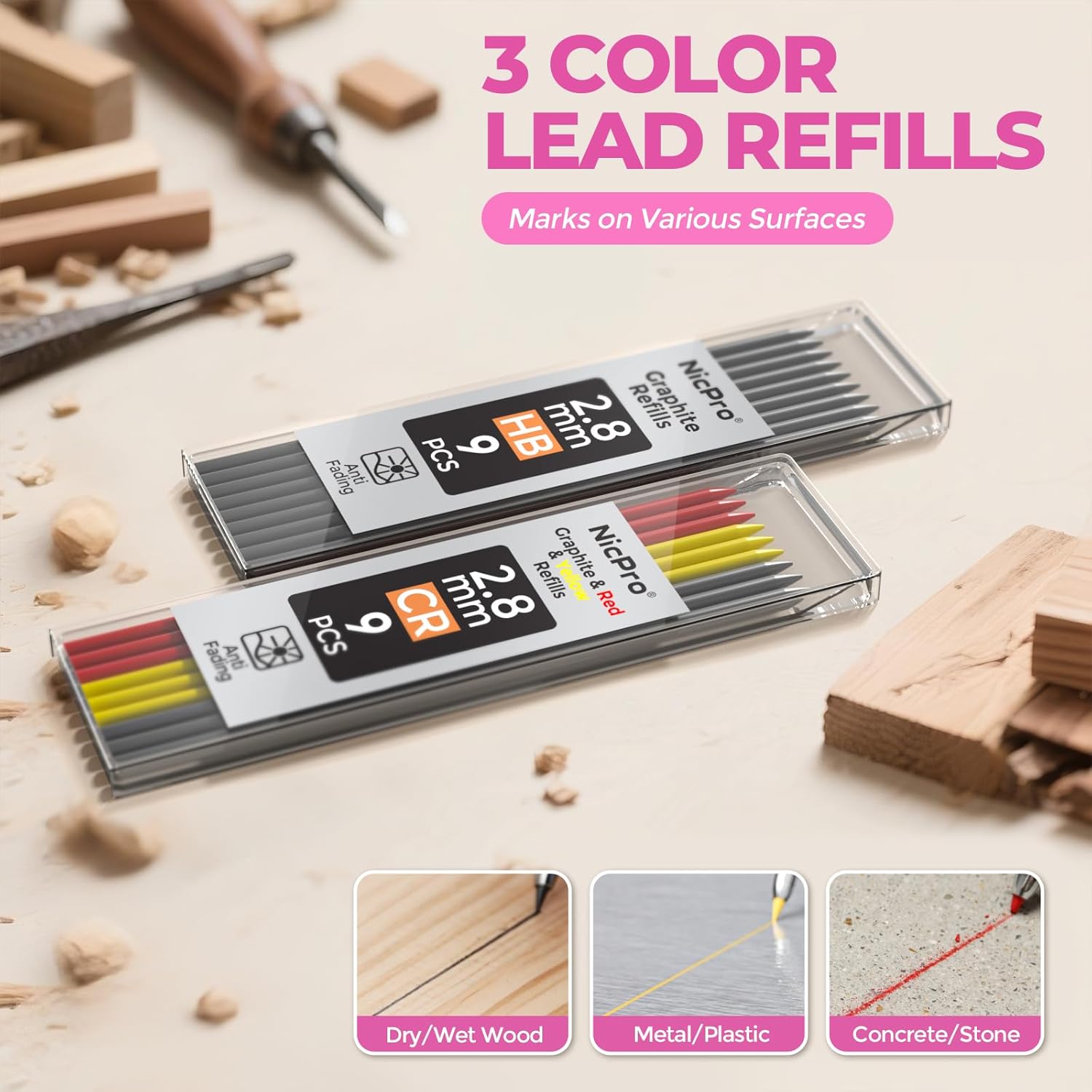 - Marks on Various Surfaces: This work pencil is matched with a 2.8 mm thick color lead, It can mark on almost all surfaces whether dry, damp, smooth, rough or dusty. Making it a standout choice for woodworkers, electricians, and other tradespeople