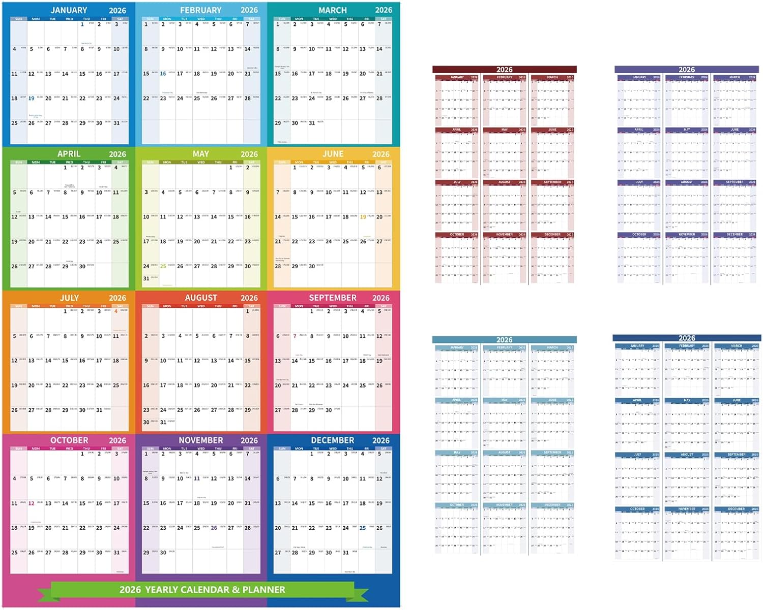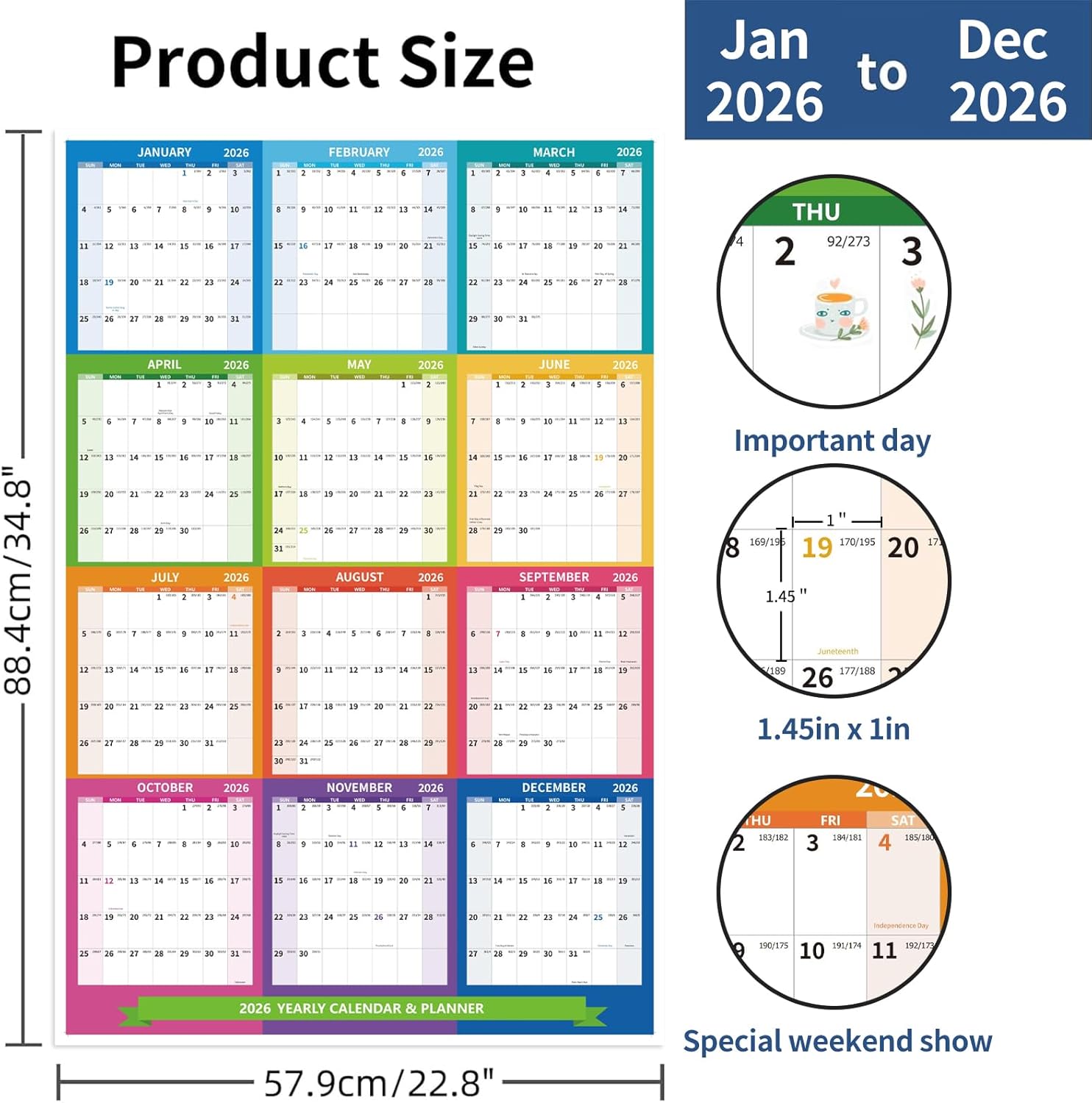 2026 Wall Calendar 34.8" x 22.8" Large Vertical Yearly Wall Hanging Calenda with Julian Date Thick Paper Calendar 12 Month Annual Wall Planner for Wall Office Fridge(Colorful)