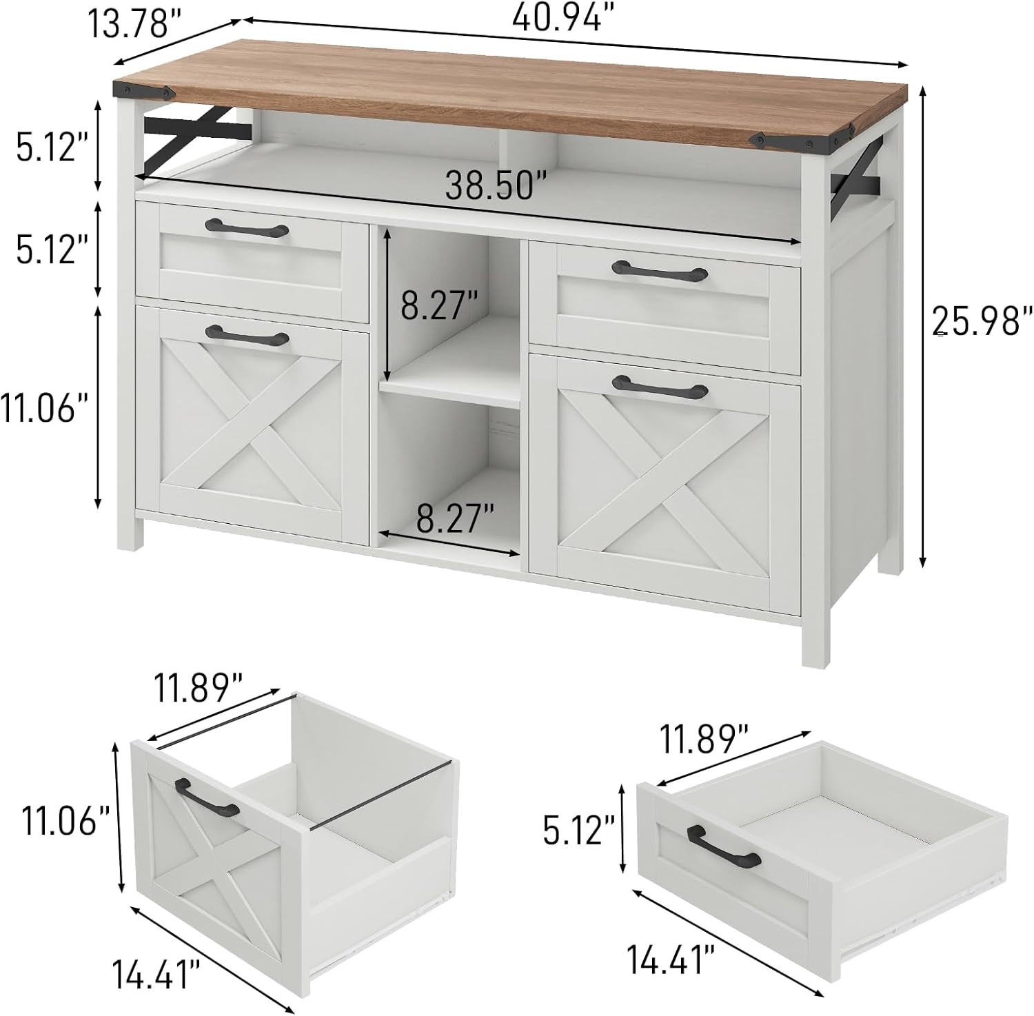 Farmhouse Filing Cabinet with Adjustable Shelf for Home Office, Lateral File Cabinets 4 Drawers with Open Storage Shelf, Filing Organization Storage Cabinets for Hanging Files Letter/A4.