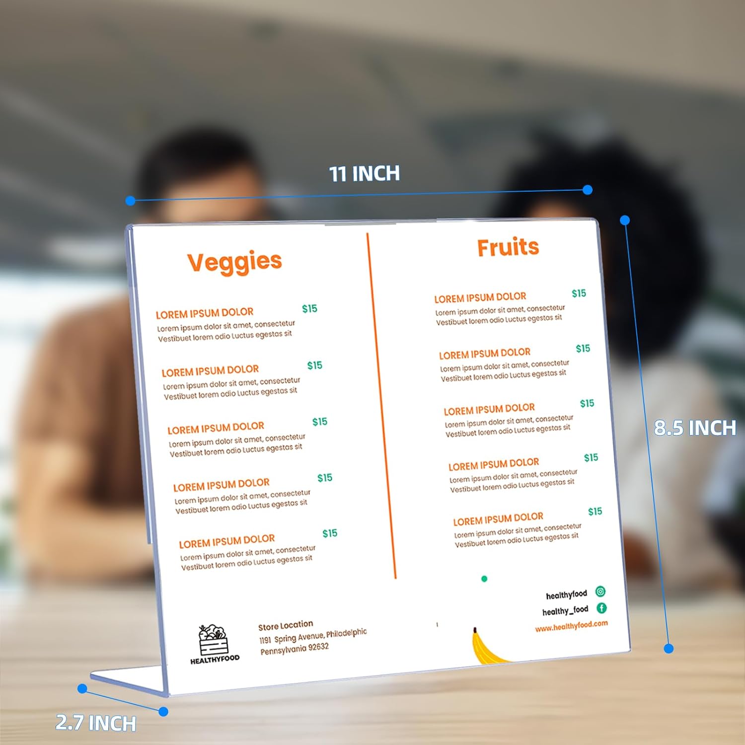 - Anti-Slip Pads & Versatile Tabletop Use: Featuring non-slip silicone pads, these holders stay firmly in place on glossy surfaces. The compact 11 x 8.5 inch size fits standard paper, while the lightweight build allows easy repositioning. Use them for menus, event schedules, directional signs, or product labels.
