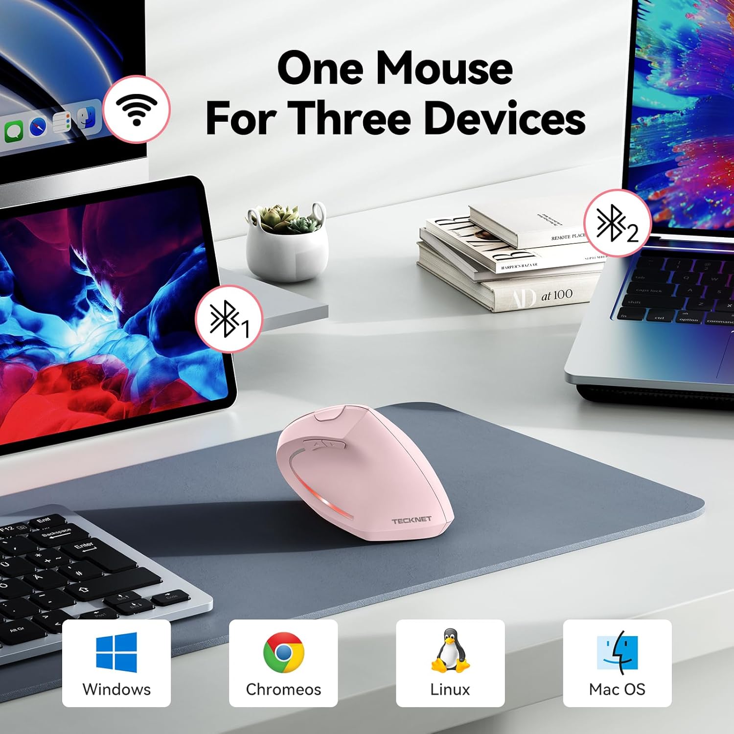 TECKNET Ergonomic Mouse, Wireless Bluetooth Vertical Mouse, 4800 DPI Optical Tracking, 6 Adjustable DPI, Quiet Clicks, 2.4GHz with USB A Receiver, 12 Months Battery, 6 Buttons, Wide Compatibility