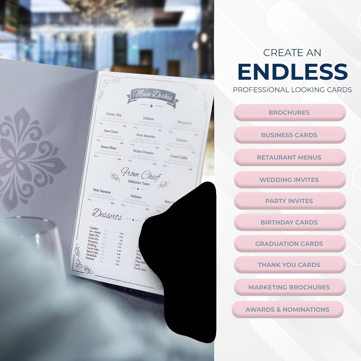 - THE ULTIMATE CHOICE FOR A VARIETY OF USES: Perfect for Wedding Invitations, Baby Showers, Birthday Wishes, Awards, Brochures, Marketing Materials, Thank You Cards, Graduation, Retirement, Restaurant Menus and more