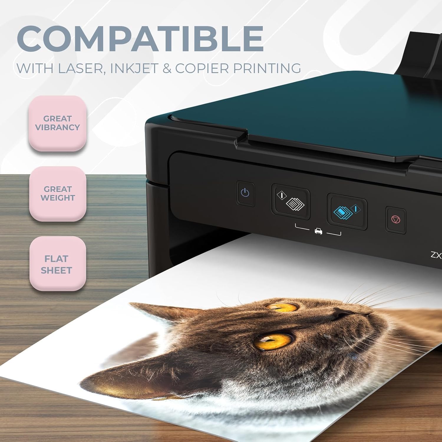 - VIBRANT PRINTS - COMPATIBLE WITH MULTIPLE CARD PRINTERS: your cards will look professional with the most vibrant and attractive colors. Ideal for Laser, Inkjet and Copier printing. Dimensions: 8.5 x 11” , 50 pack