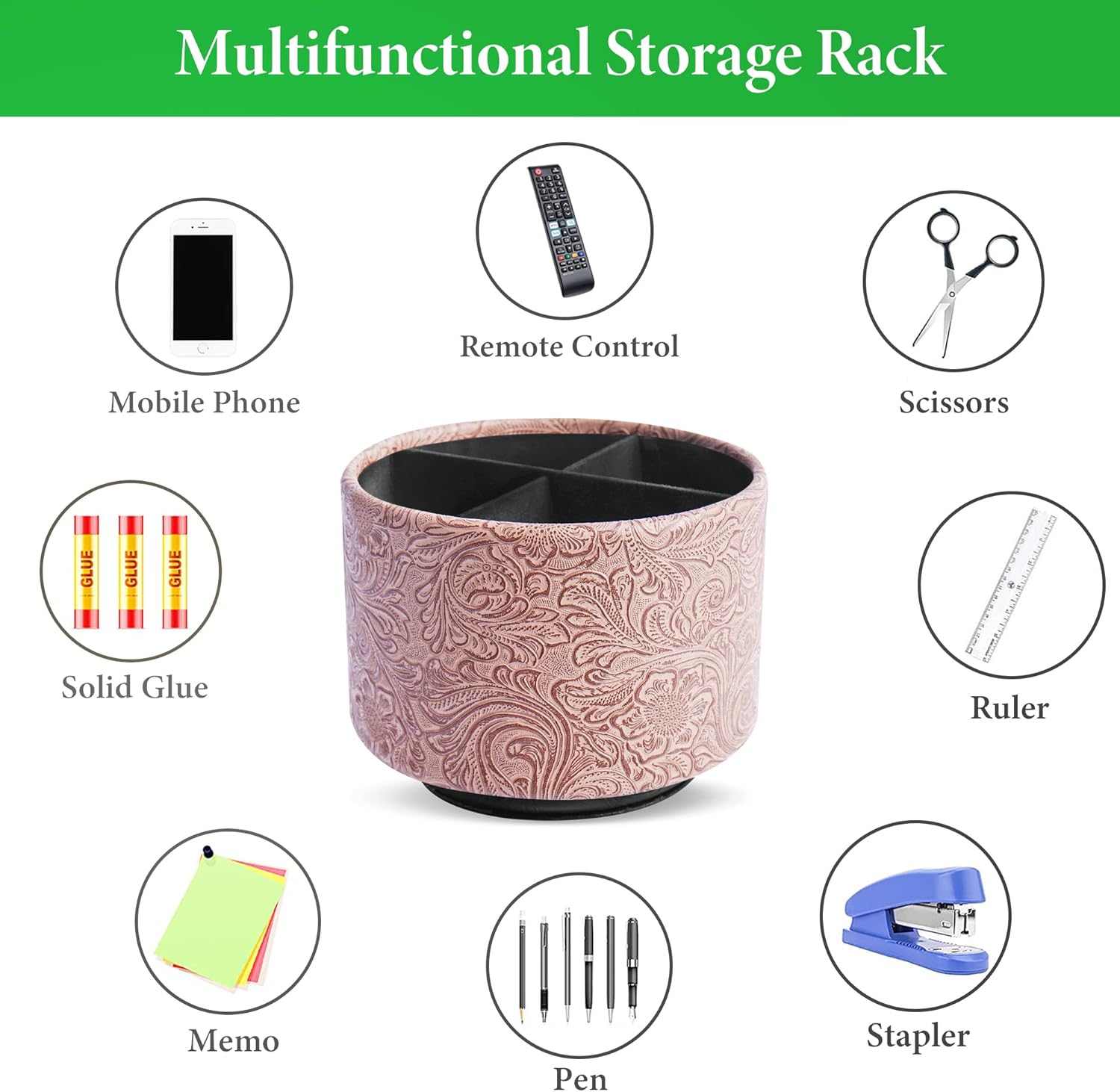 - ✎360° Revolving Design: You can freely rotate the pen holder steadily left and right,unique spinning base design allows easy access to items from any directions.The non-slip pads on the bottom keep it stay in place when rotating.