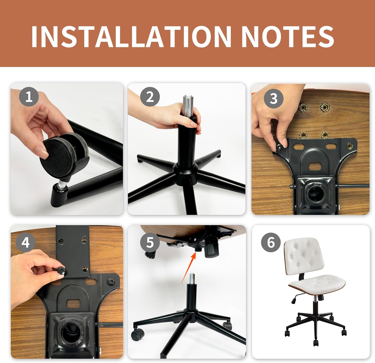 - Premium PU and Modern Walnut Style: This home office chair is made of high-quality PU material, which is breathable, easy to clean and also waterproof and wear-resistant. The curved backrest is made of unique curve craftsmanship. Classic shape with elegant lines, perfect for study room, office, meeting room.