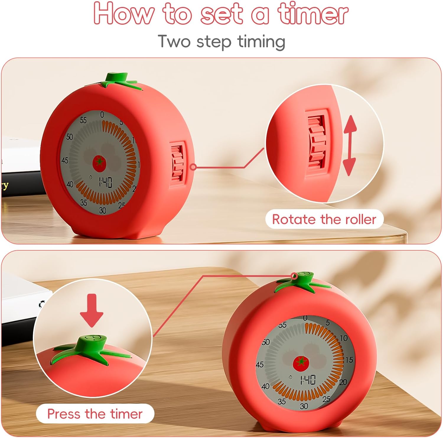 Digital Visual Timer for Kids with Protective Case, Tomato Theme 299 Minute Pomodoro Timer for Classroom Office Kitchen, Time Management Tools for ADHD Children
