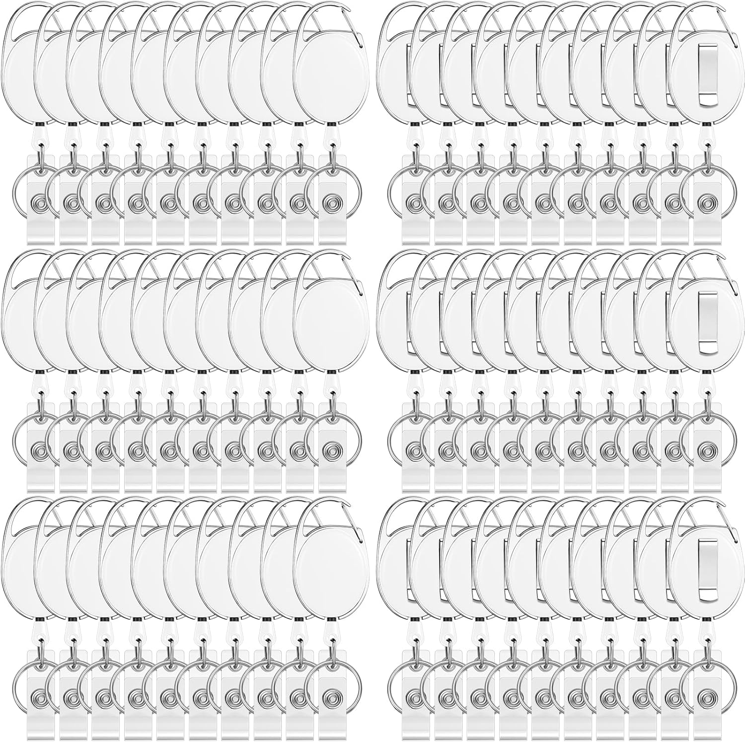 - Package: you will get 50 packs of retractable badge clips, featuring clip, stainless steel key ring, vinyl strap and plastic cover, clip attachment for effortlessly and quickly fastening to belt loops, straps, backpacks, bags and more, allow a quick and easy way to scan or swipe your badge