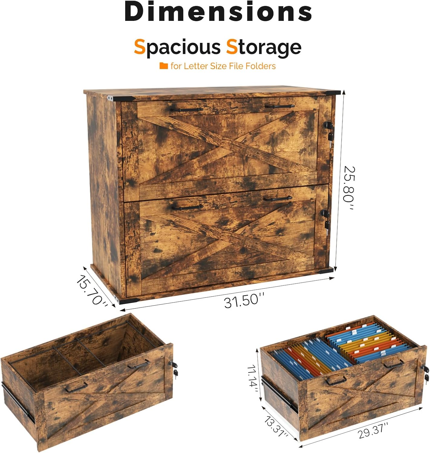 - 【Charming Farmhouse Style】This file cabinet, with its barn door elements and ingenious appearance design, showcases unique charm and stands out, adding farmhouse charm to your home while also being able to enliven any office, study or living room.