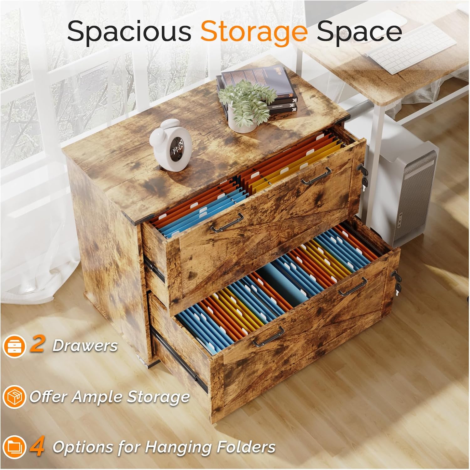 VINGLI 2 Drawer File Cabinet with Lock, Home Office Filing Organizer, for Letter Legal A4 Size File Folder Storage, Modern Farmhouse, Wood Lateral Filing Cabinet, Archivador (Rustic Brown)