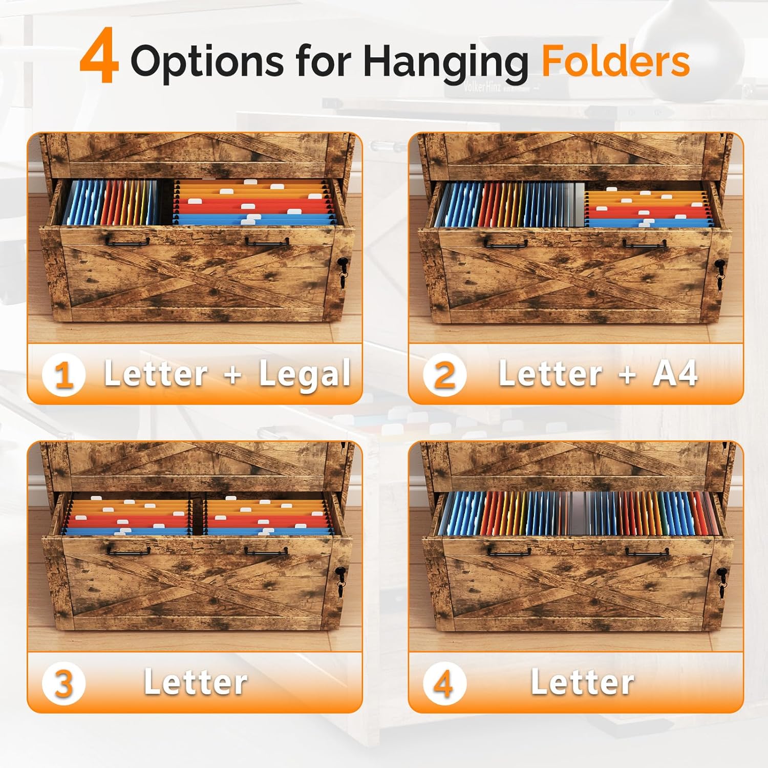 - 【Lockable for Privacy】The 2 large drawers for hanging folders can be independently locked, and each lock is accompanied by 2 keys for added security.