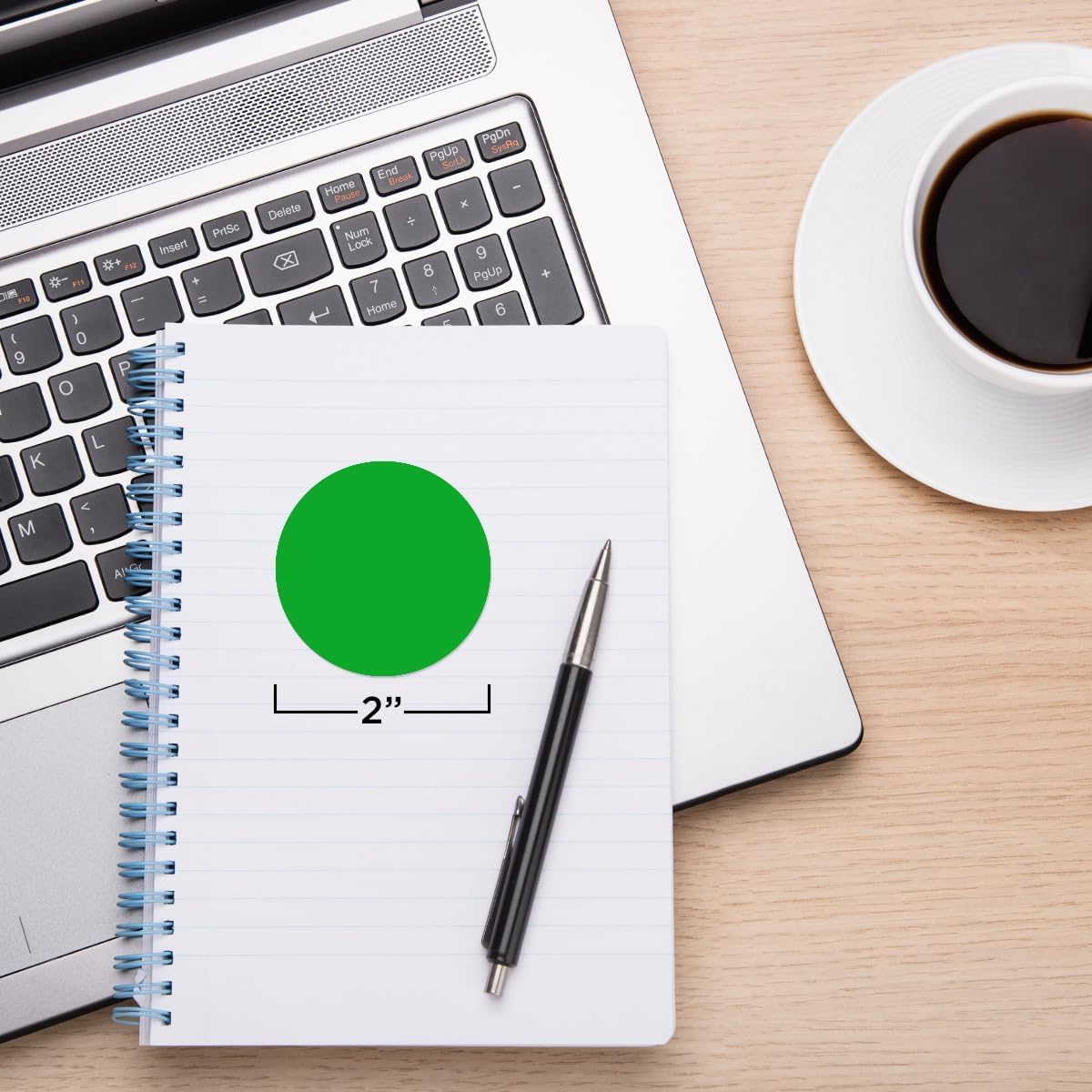 - Secure Adhesive Green Color Dot Stickers; Featuring permanent adhesive, these 2-inch round sticker labels adhere firmly to most surfaces, ensuring long-lasting durability.