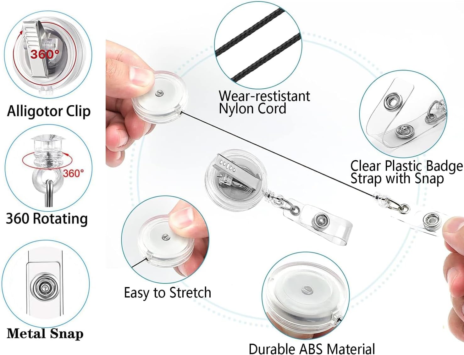 - This funny badge reels are made of durable materials and alligator clip that withstand daily use in busy work environments. The retractable nylon cord extends up to 24 inches, allowing you to easily swipe your card without removing your clothing.