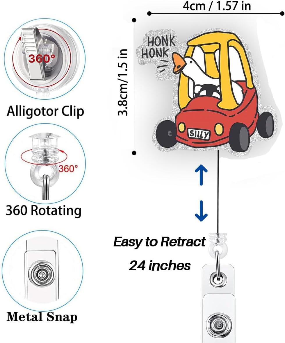 2Pcs Funny Angry Goose Badge Reel for ID Card Retractable Doctor Teacher Badge Holder Clip Silly Goose Pediatric Nurse Badge Reel, Nursing Student Badge Clip, RN LPN CNA MA Medical Worker Accessories