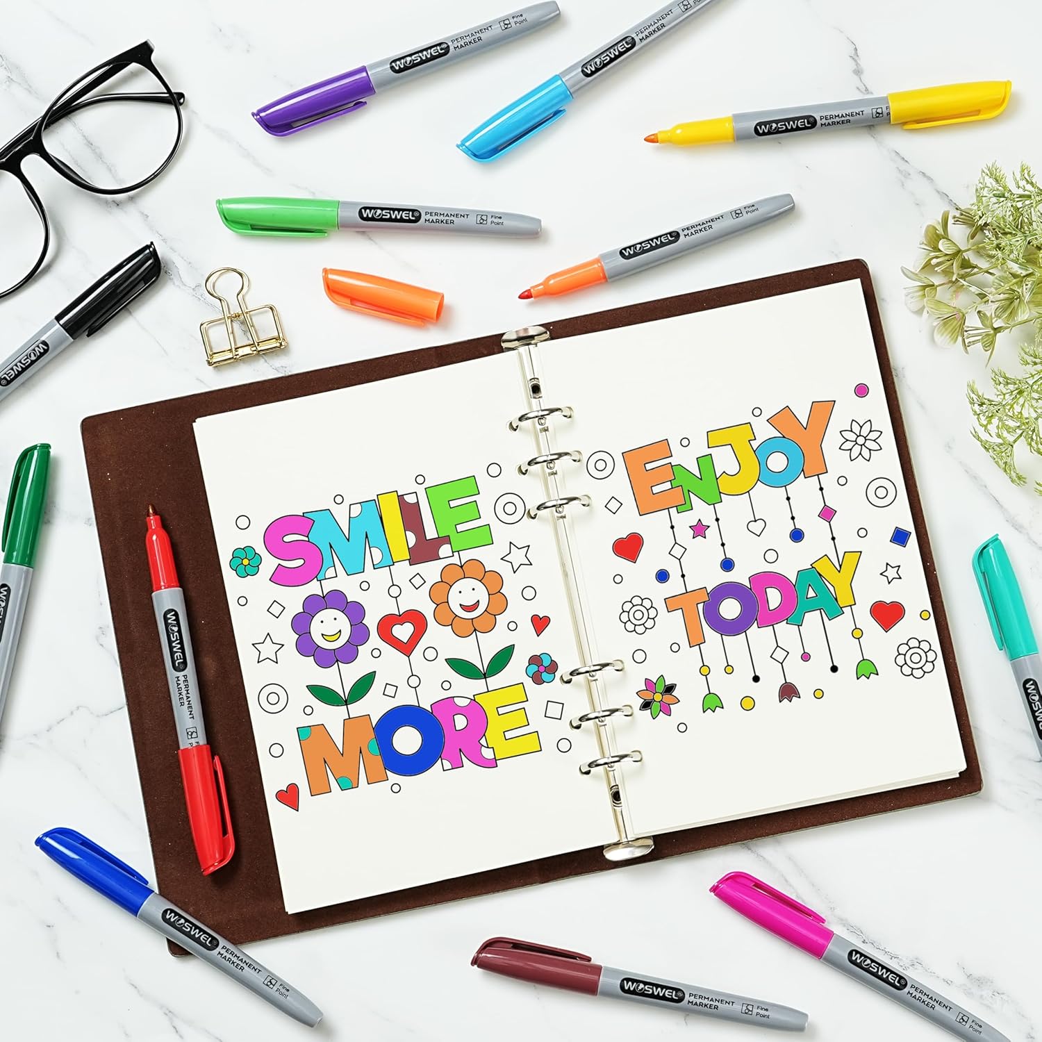 - Waterproof Markers: Work on Almost Any Surface. These fine point permanent markers are waterproof, ensuring long-lasting results that won't be affected by water damage, richly pigmented, delivering smear proof, fade-resistant color every time. With this bulk set of markers, you'll have plenty on hand for all your creative projects and writing needs.