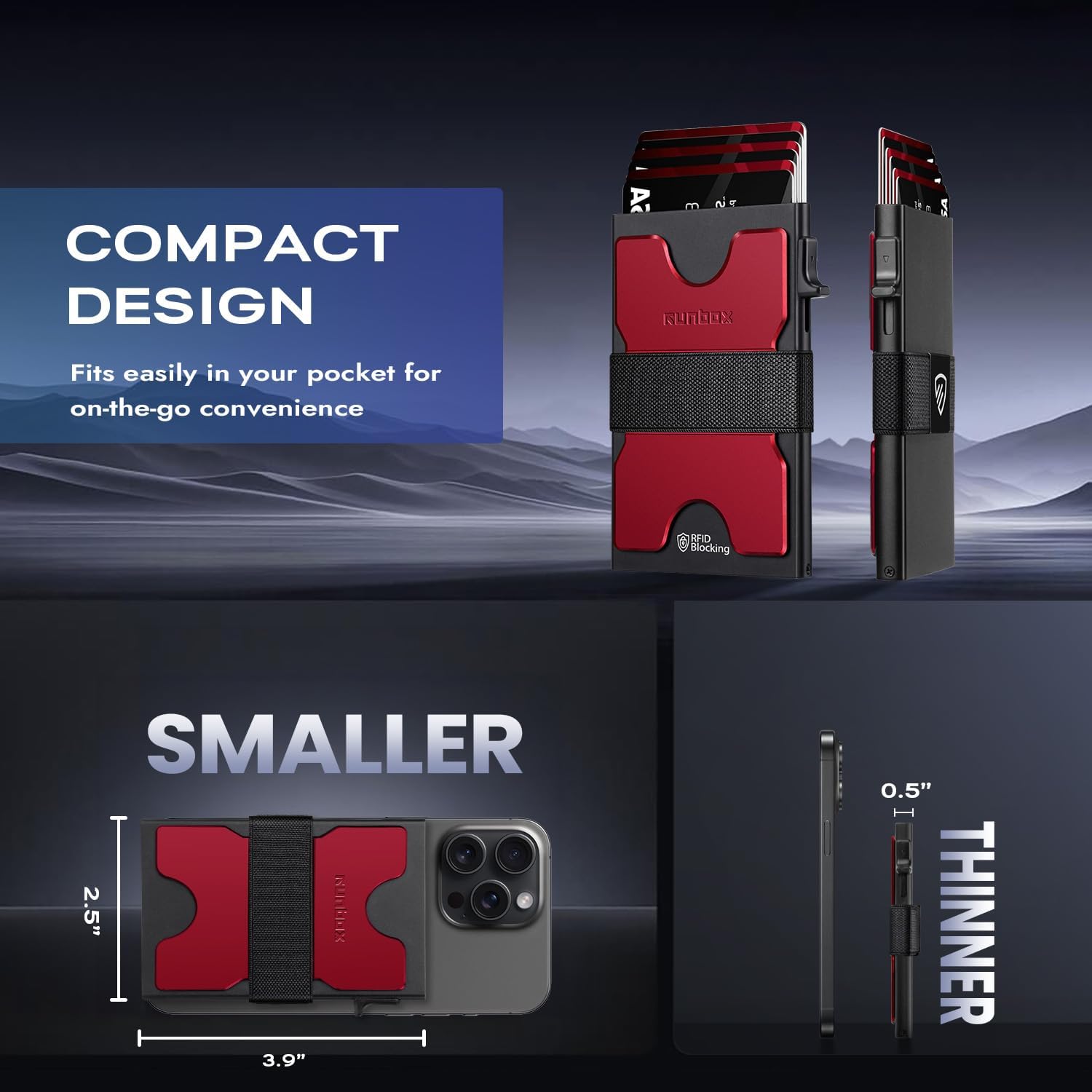 - SLIM WALLET FOR MEN with Ultra Thin & Lightweight Design: At just 0.5" thick and 2.6oz, this minimalist tactical wallet slips seamlessly into any pocket. Dimensions: 3.9"x2.5" – perfect for discrete everyday carry. The innovative expandable backplate adds storage without bulk, letting you ditch oversized wallets