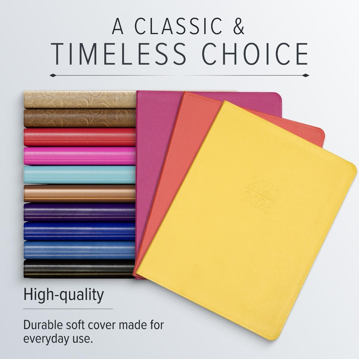Gallery Leather Academic Planner 2025-2026, Teacher and Student Weekly Monthly Planner, Elegantly Bound Calendar with Gold-Gilded Page Edges, 18 Months - Acadia Deep Red - 9x7"
