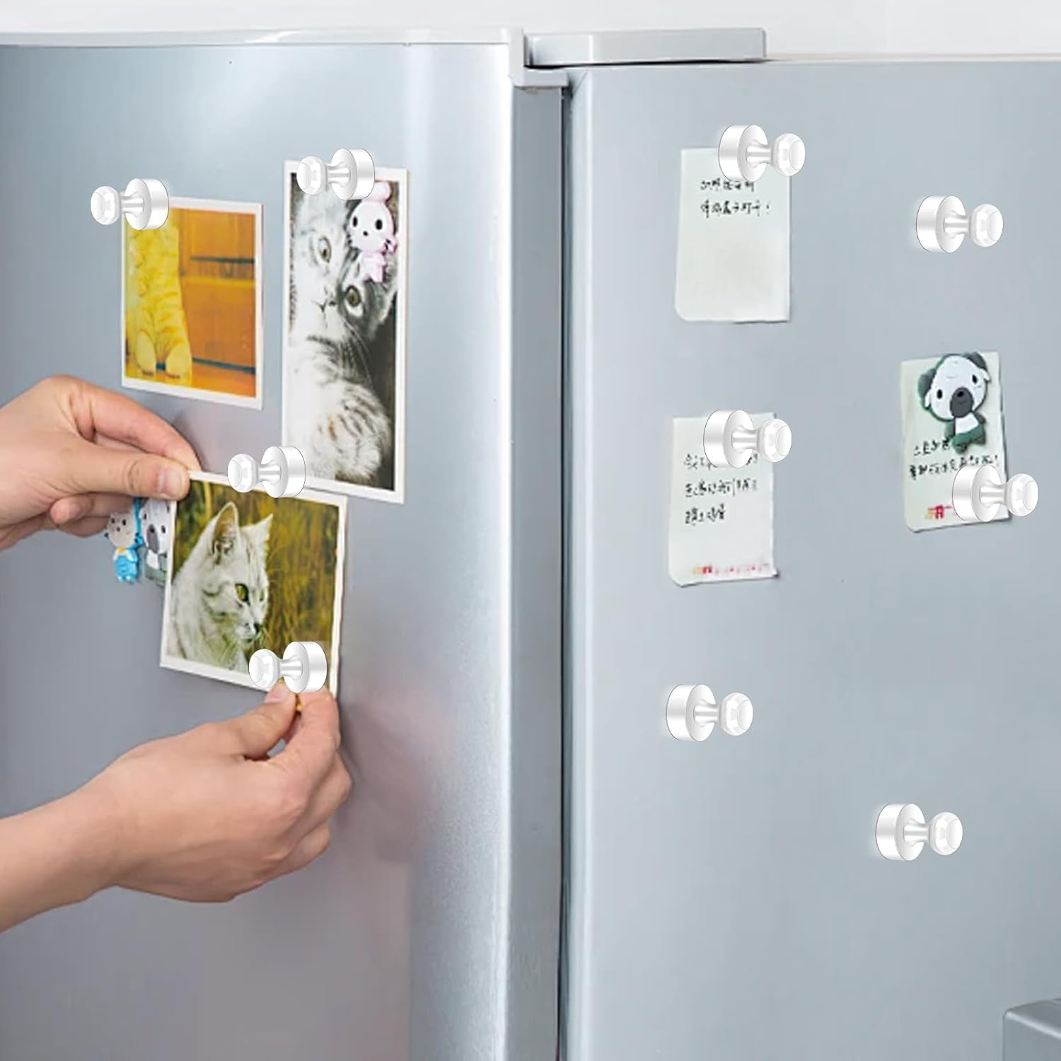 - 【Strong Magnetism】 Powerful neodymium magnets can hold up to 24 sheets! Industrial-grade heavy duty magnet features make strong fridge magnets easy to grip and attach to the whiteboard. No marks or stains when removed silver metal push pin magnets after used from whiteboards, refrigerators or iron products