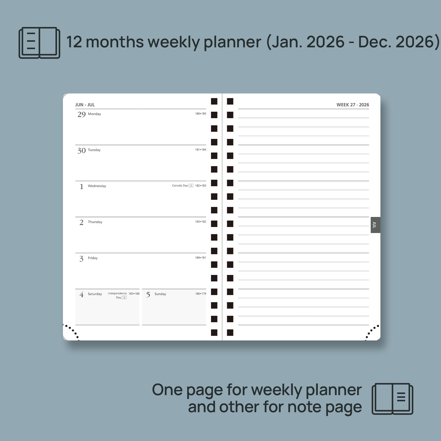 - EXTRA PAGES: This small planner 2026 also contains "2026-2027 Yearly Overview" Page + "2026-2027 Holiday & Calendar" Page + 3 Contact Pages +1 Password Page +53 Horizontal line page + 7 Dotted Notes Pages for jotting down your ideas, thoughts or any other happy things in detail.