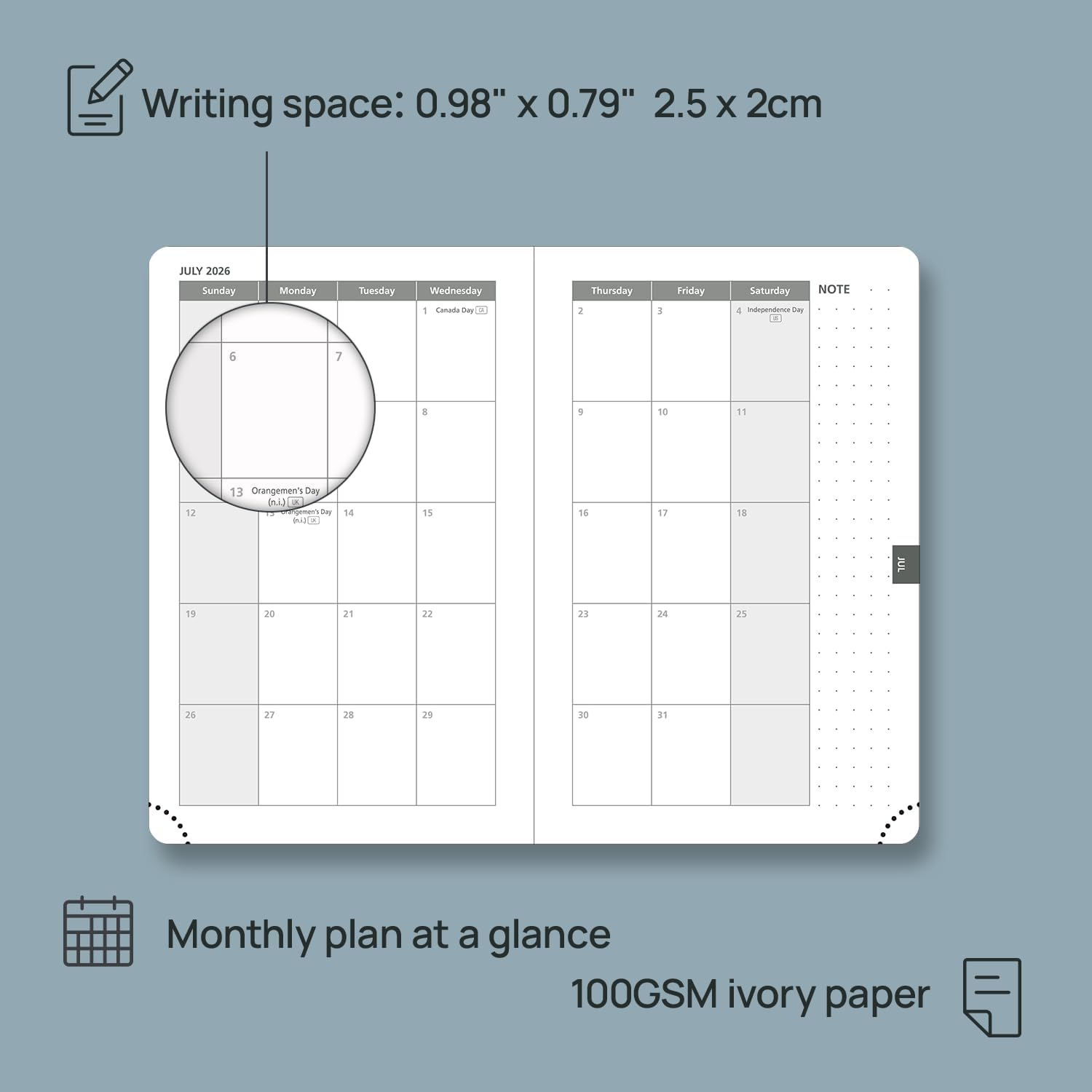 - EXTRA FUNCTION PAGES: This weekly calendar also contains "2026-2027" Year Planner Pages + "2026" Birthday & Important Date Pages + Expenses Pages + Calendar Pages + Holiday Reference Pages + Dotted Notes Pages + Contacts Pages+ Password Pages, providing space for recording important information and enhancing organization.