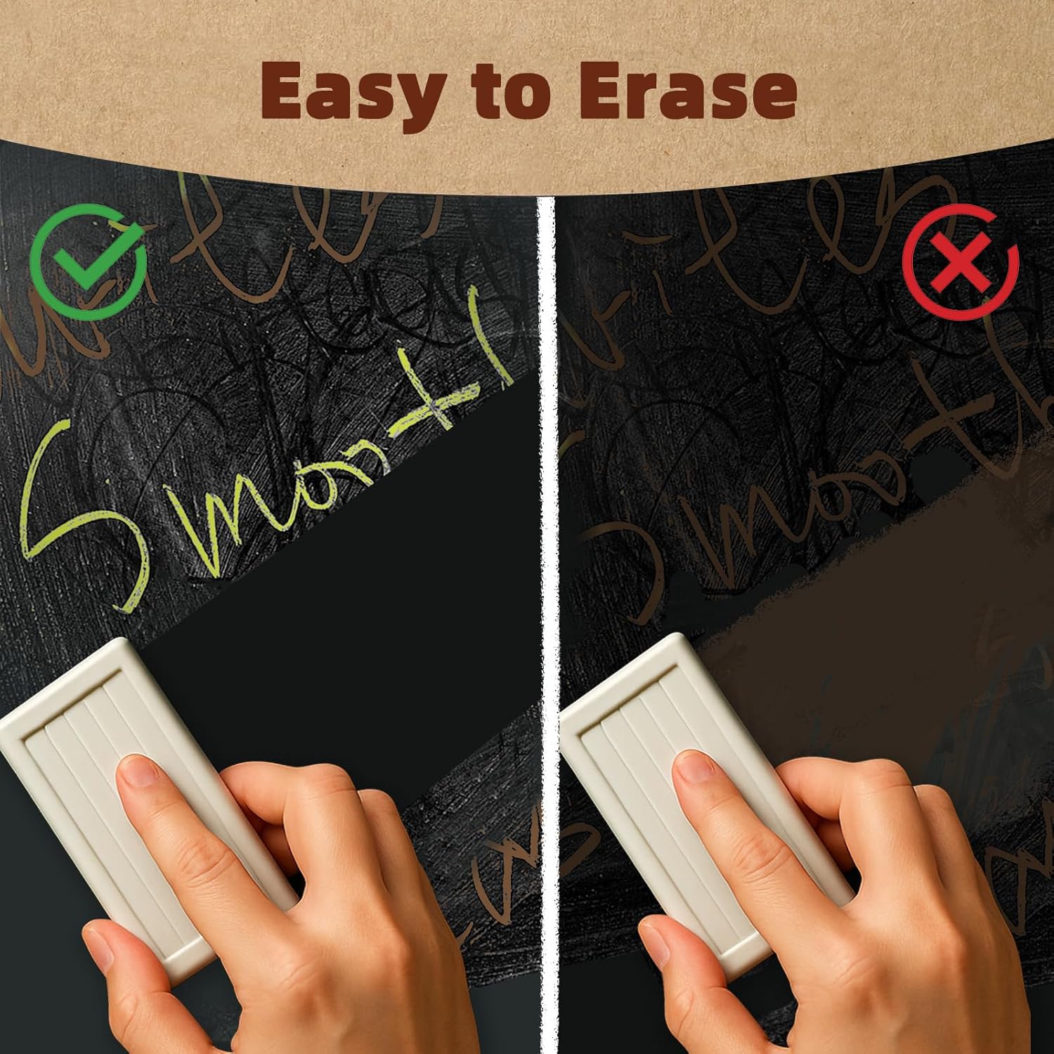 - Smooth Writing & Effortless Erasing: The chalk delivers strong adhesion and vibrant color saturation, producing uniform, deep-toned lines on blackboards without uneven fading. Its dust-free design minimizes airborne particles—dry wiping requires only gentle friction, while wet wiping dissolves chalk residue completely.