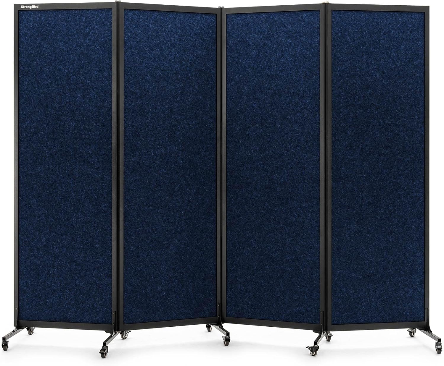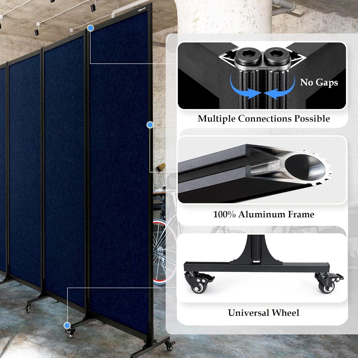 Upgrade Version Room Partition and Divider, Freestanding Rolling Dividers with Wheels,Office Privacy Screen Divider Wall,Classroom Felt Dividers,8'2"L* 6'7"H,4 Panel,Blue