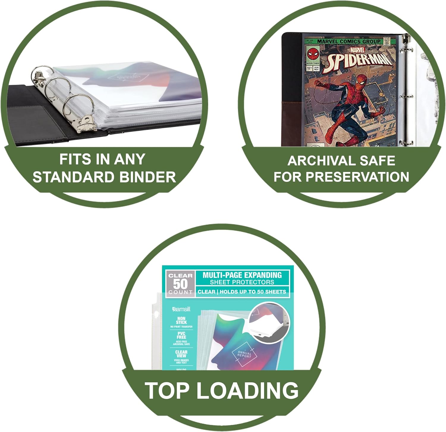 Samsill High Capacity Sheet Protectors, 25 Pack, 8.5x11 Inch Page Protectors for 3 Ring Binder, Heavy Duty, Multi-Page Protector, Holds 50 Sheets, Top Loading, Acid Free