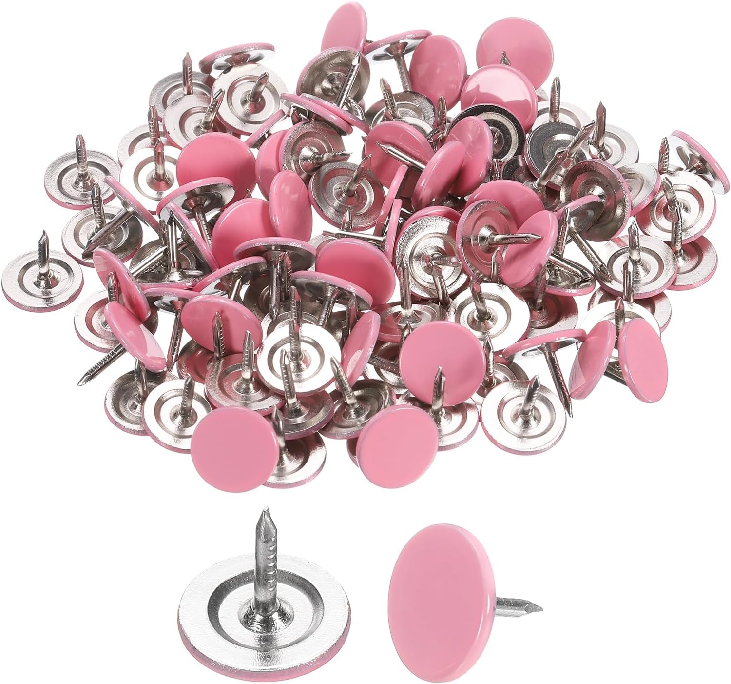uxcell 150Pcs Upholstery Tacks, 11mmx10mm Flat Head Thumb Tack Decorative Furniture Nails Push Pins for Furniture Sofa Headboards, Pink