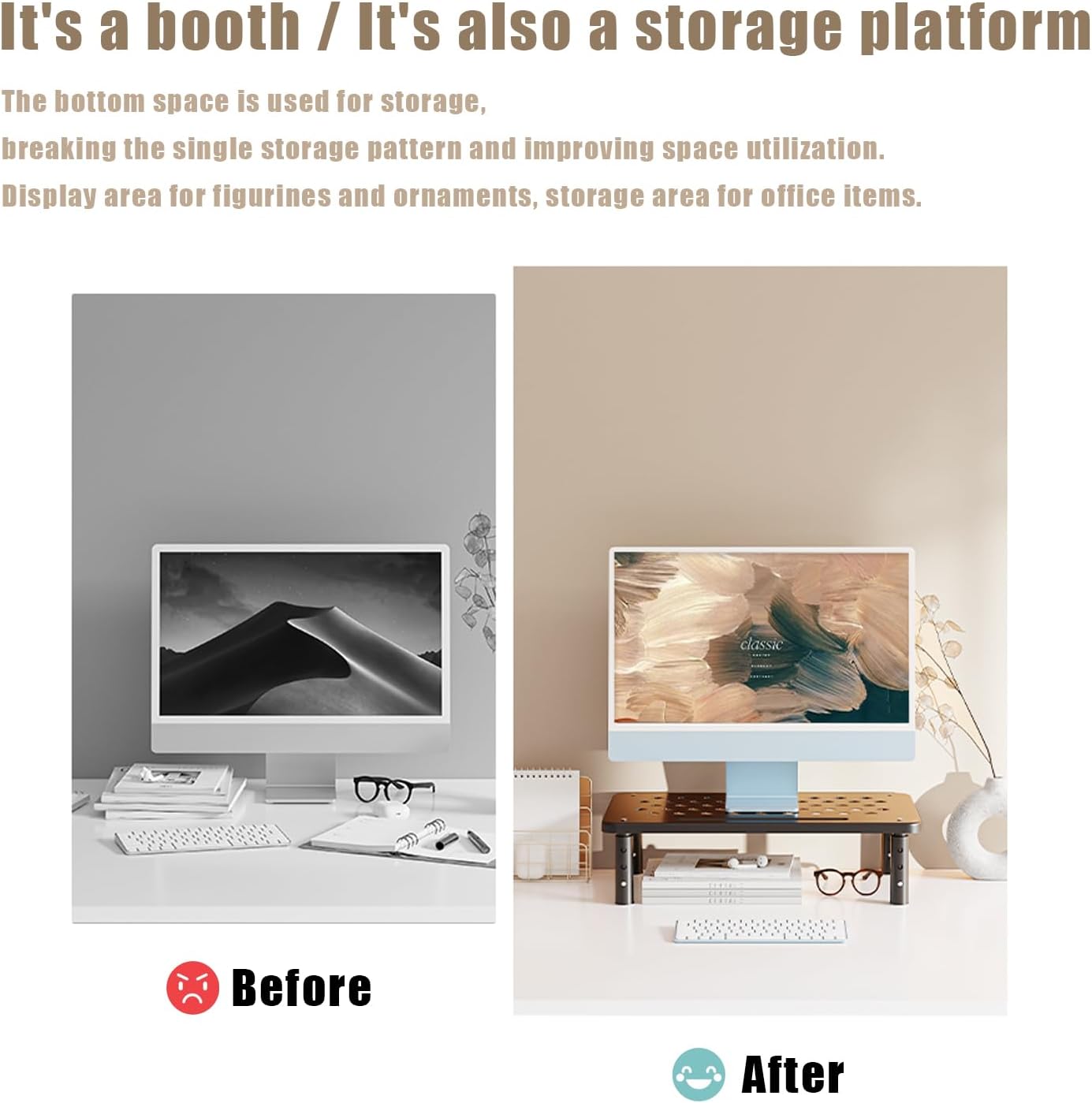 Computer Monitor Stand for Desk,Laptop Stand,Printer Stand,Adjustable and Stackable Height Increasing Storage Rack Suitable for Office, Home, and School Supplies,Black