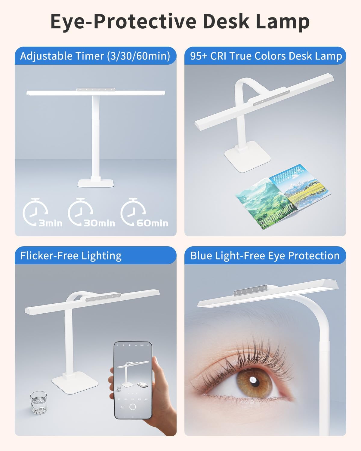 - Eye-Friendly Touch Control Table Lamp: Experience strain-free focus with this advanced reading lamp designed to protect your eyes. Features zero flicker and blue light-free illumination, ideal for prolonged study or work. The adjustable gooseneck offers precise positioning (360° flexibility). Engineered for students, professionals, and anyone prioritizing eye health and ergonomic adaptability