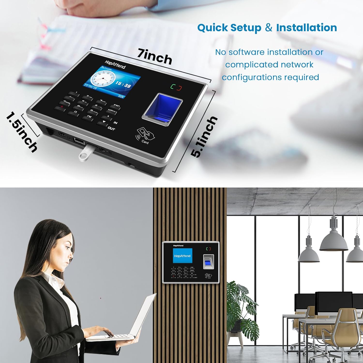 - Standalone Use: In order to protect data privacy, HapAttend time clock prohibits internet connection, and data can be transmitted through USB flash drive.