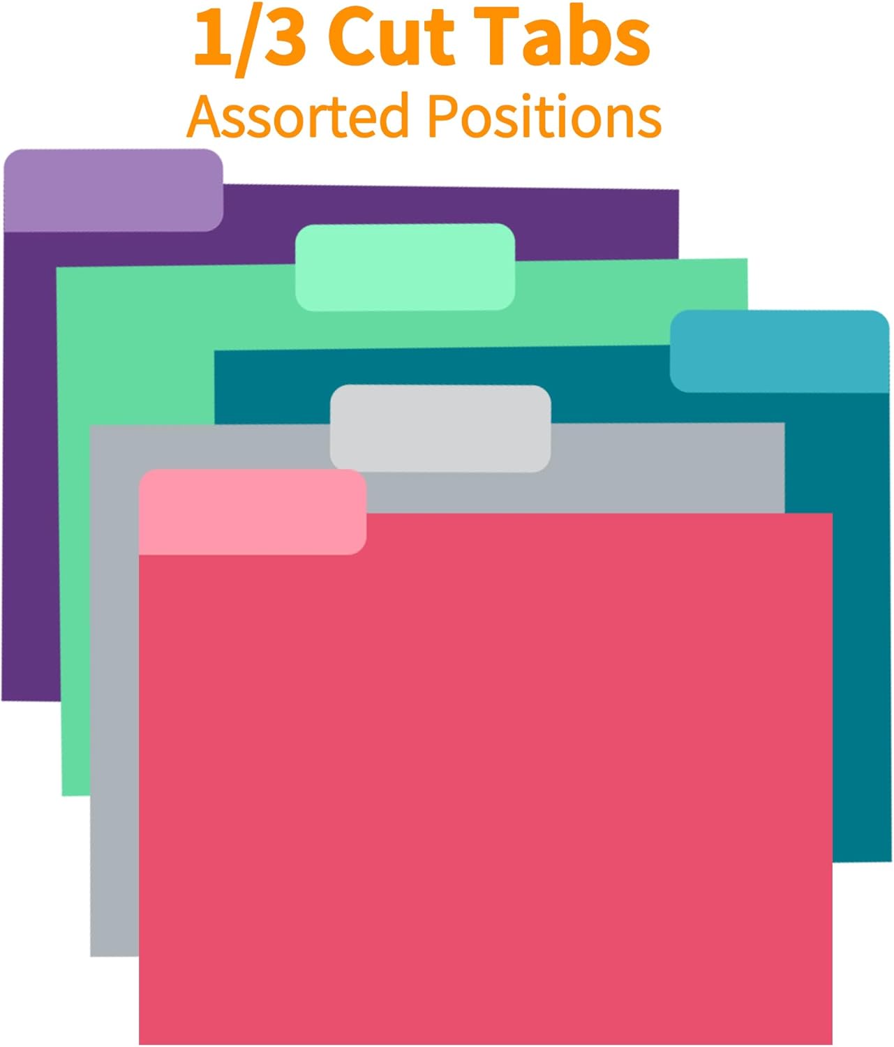 - 1/3-CUT TABS:1/3 cut tabs in three distinct positions.allow plenty of room for labeling;Keep organized and effortlessly identify your documents.